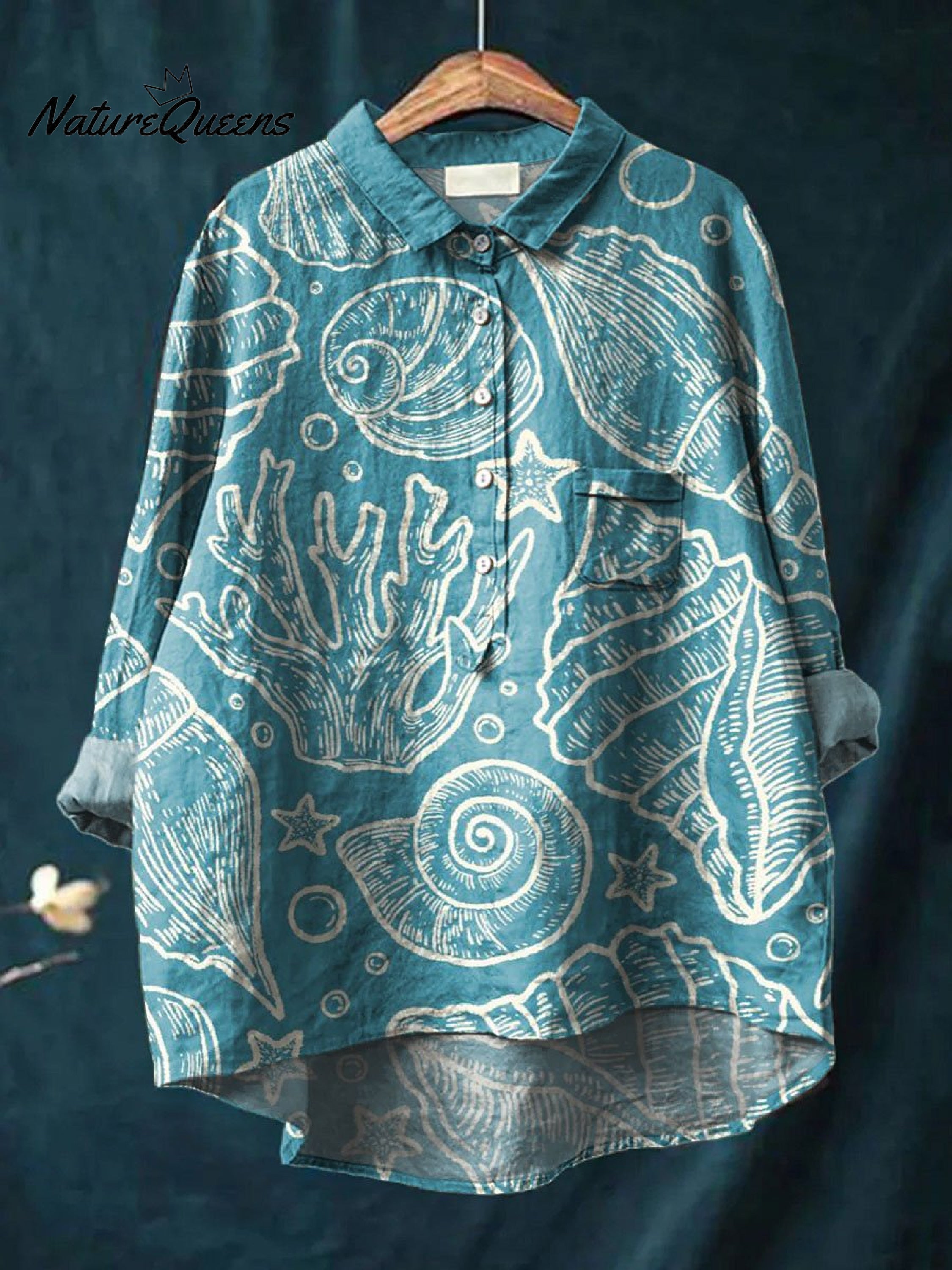 Vintage Lovely Ocean Life Art Print Casual Cotton And Linen Shirt