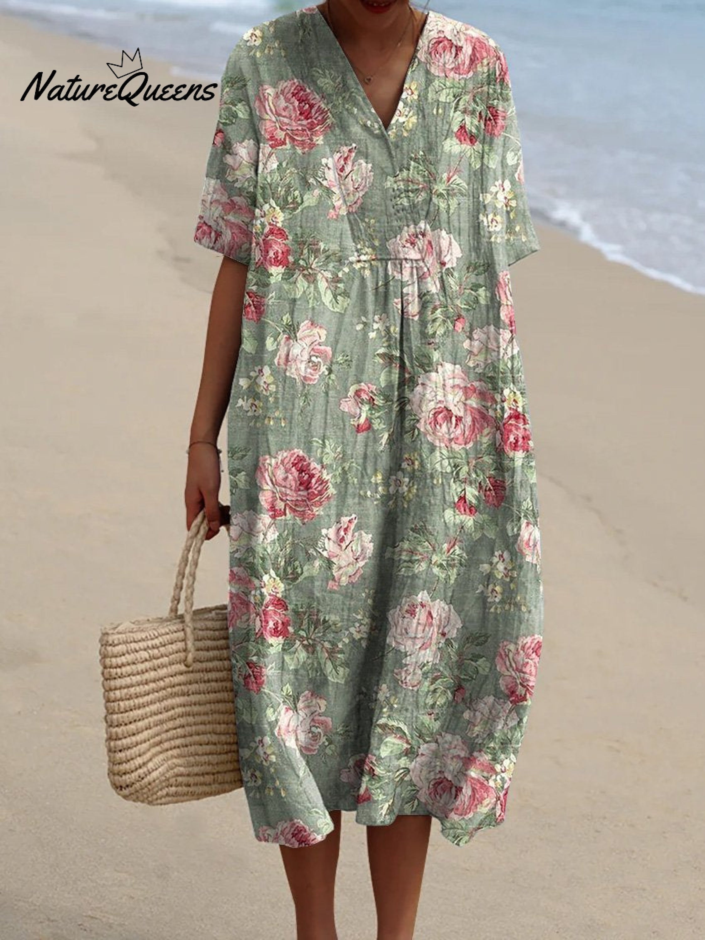 Vintage Romantic Rose Pattern Printed Women's Flowy Dress