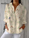 Women Lovely Floral Pattern Art Print Loose Peter Pan Collar Half Sleeve Blouses
