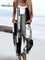 Women's Abstract Black White Stripes Art Print Casual 100% Cotton Wide Leg Jumpsuit