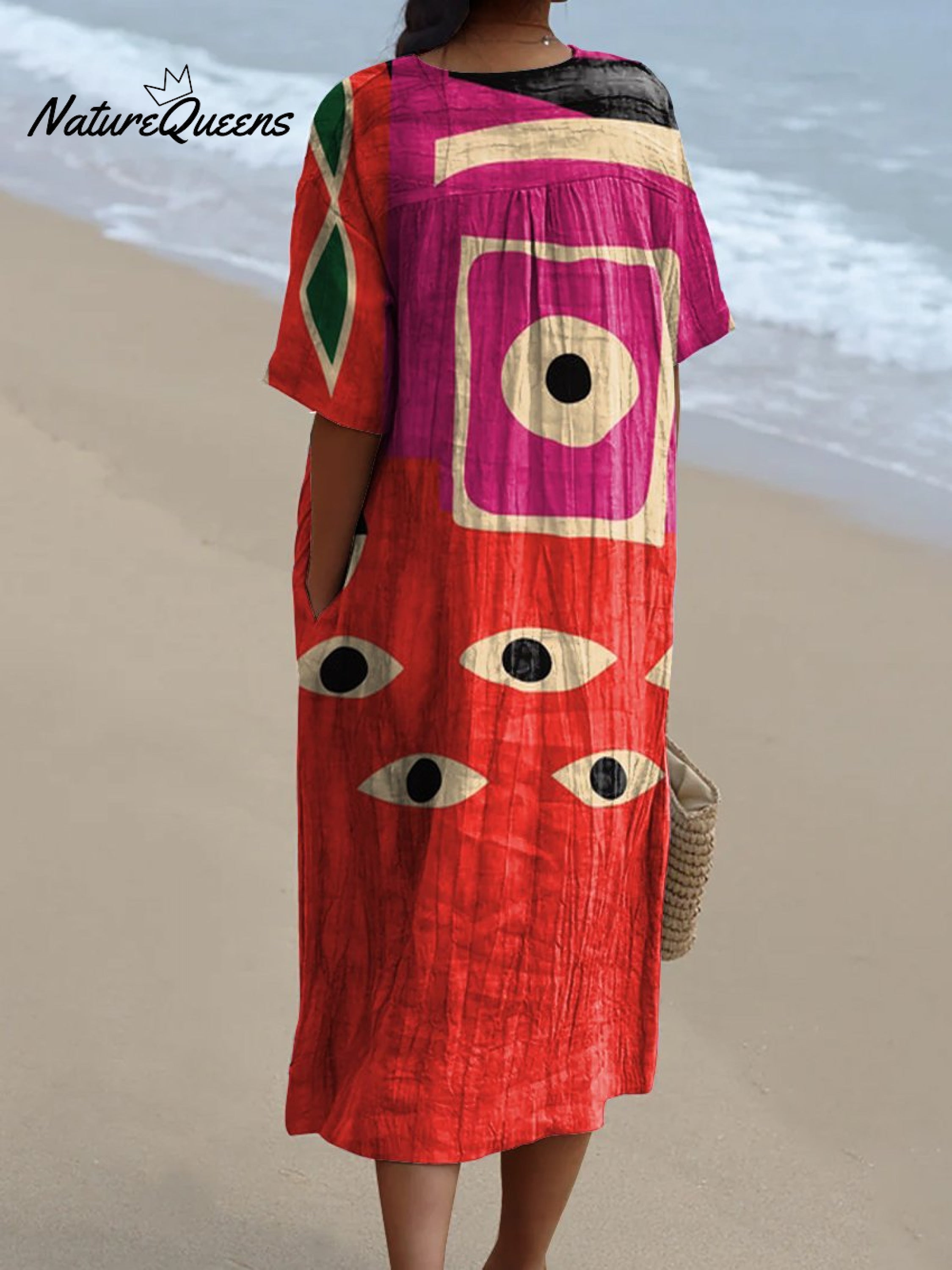 Women's Abstract Eyes and Fish Watercolor Splash Fluid Art Print Flowy Dress