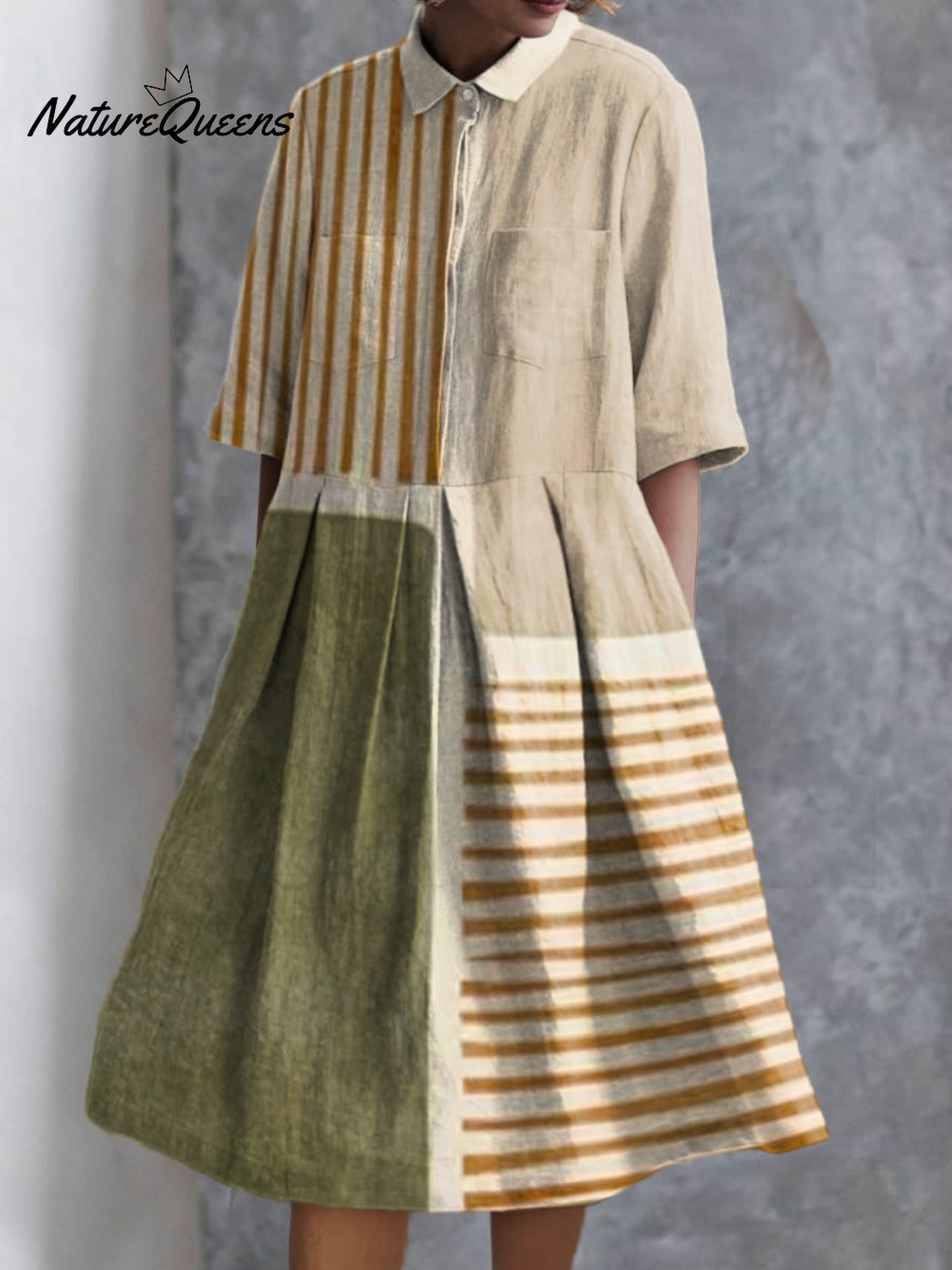 Women's Abstract Geometric Line Pattern Print Pocket Cotton Dress