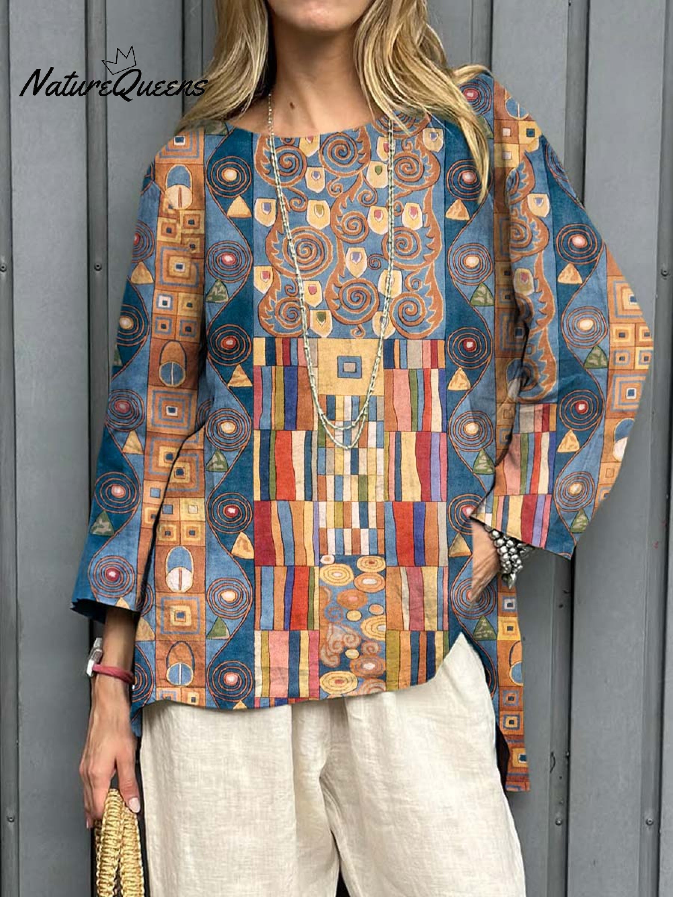 Women's Abstract Geometric Pattern Art Print Casual Cotton Linen Shirt