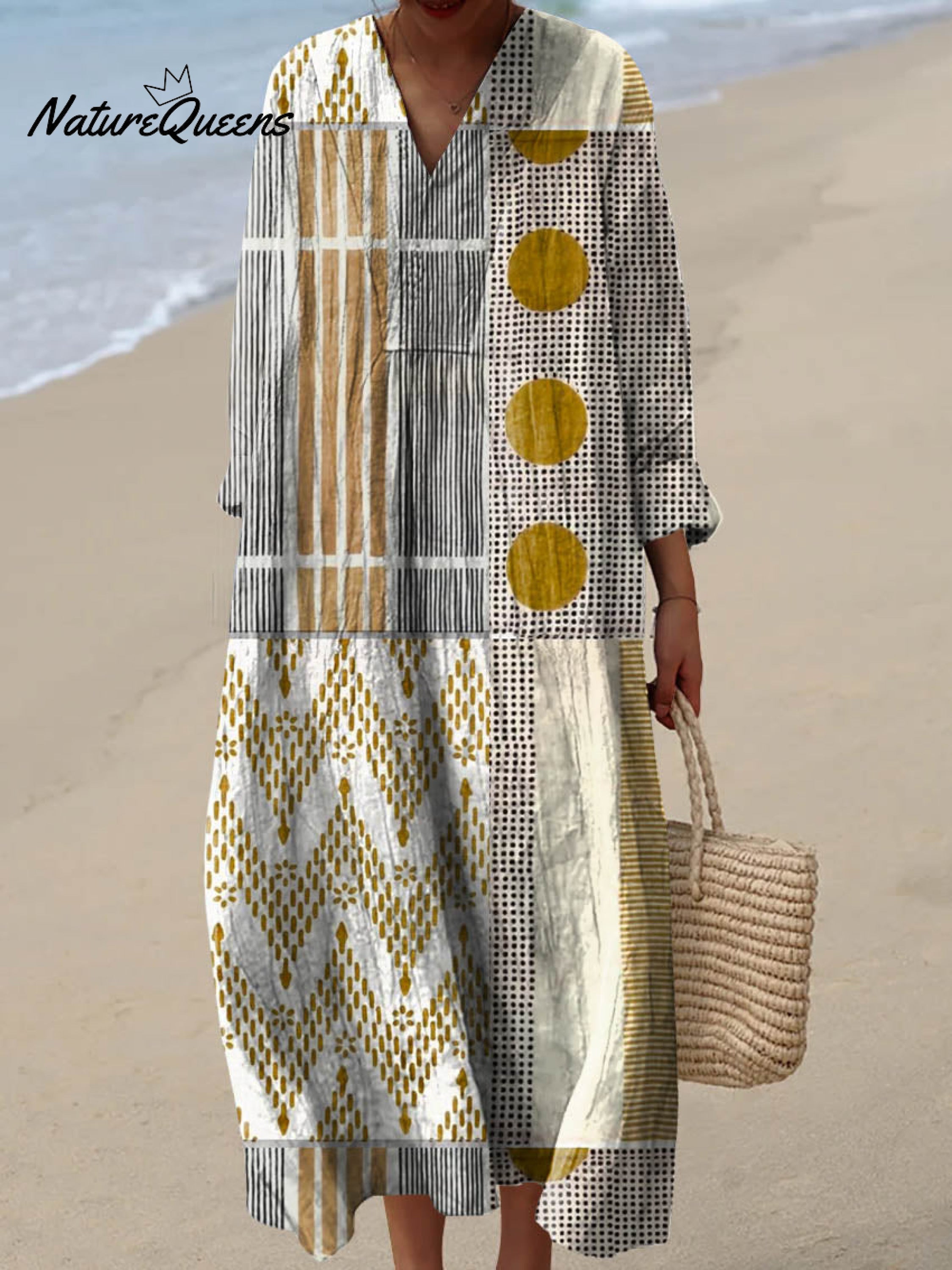 Women's Abstract Geometric Pattern Art Print Cotton Dress