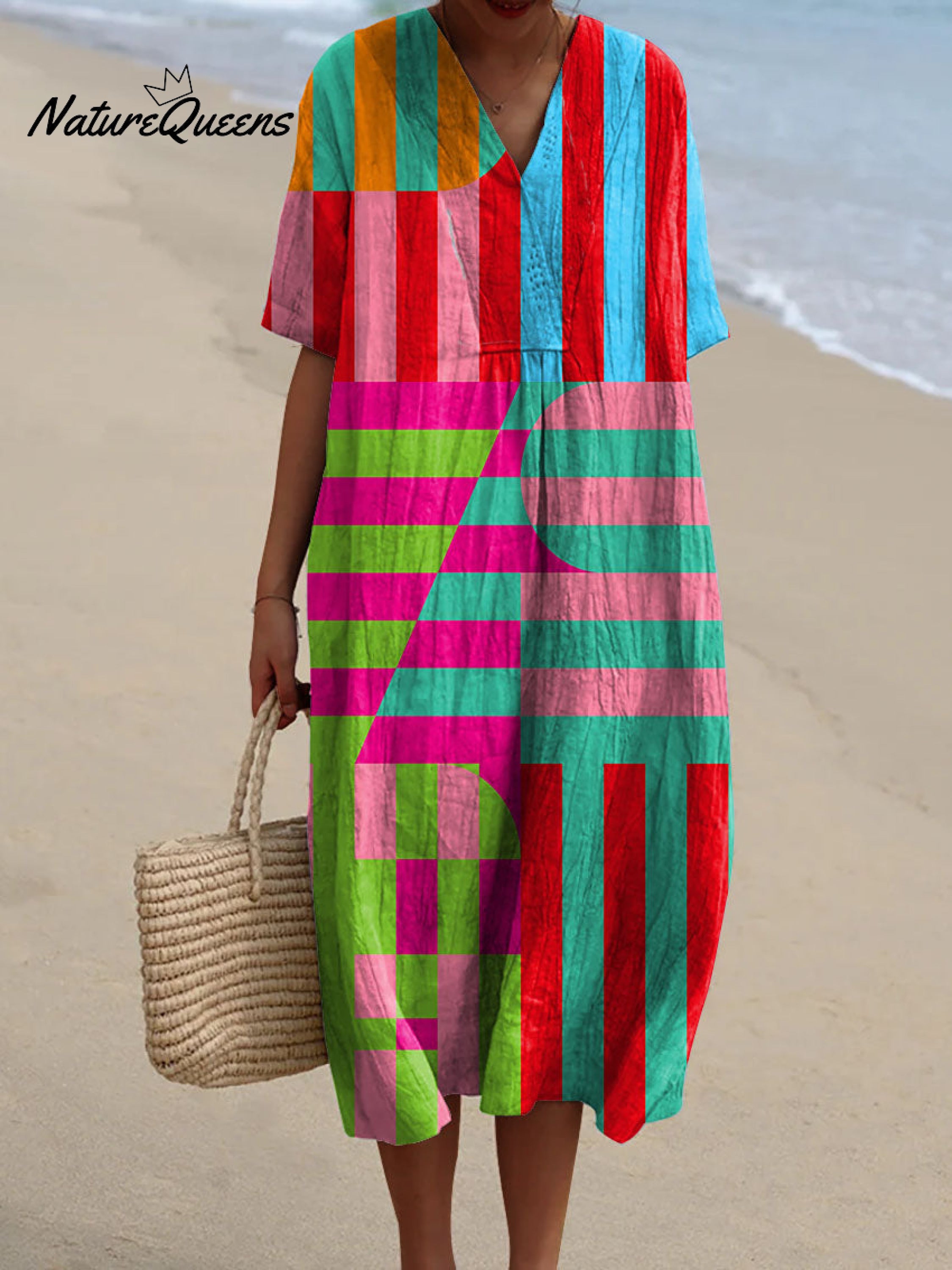 Women's Abstract Geometric Pattern Art Print Cotton Flowy Dress