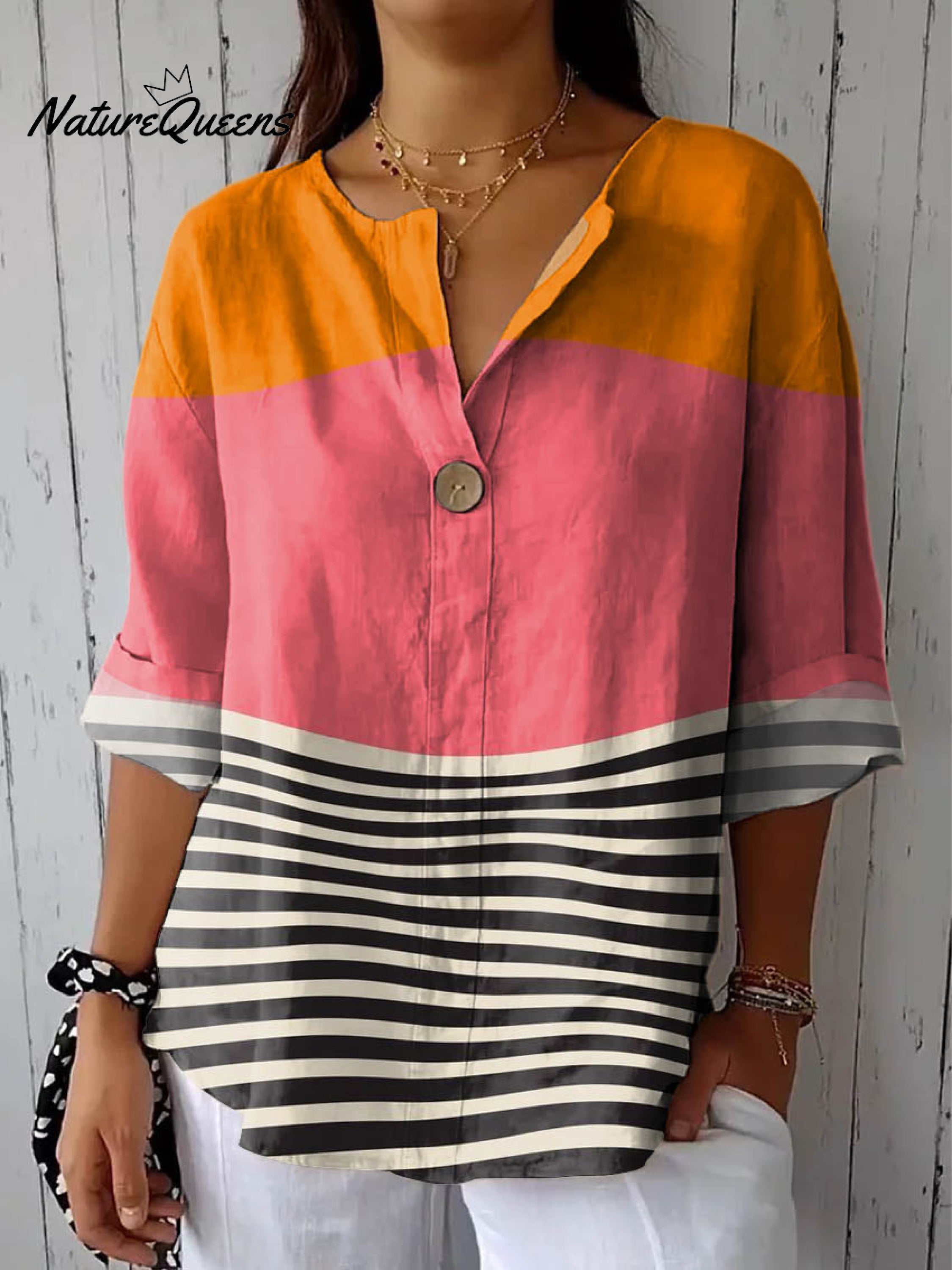 Women's Abstract Line Pattern Art Print Casual Cotton Linen Shirt