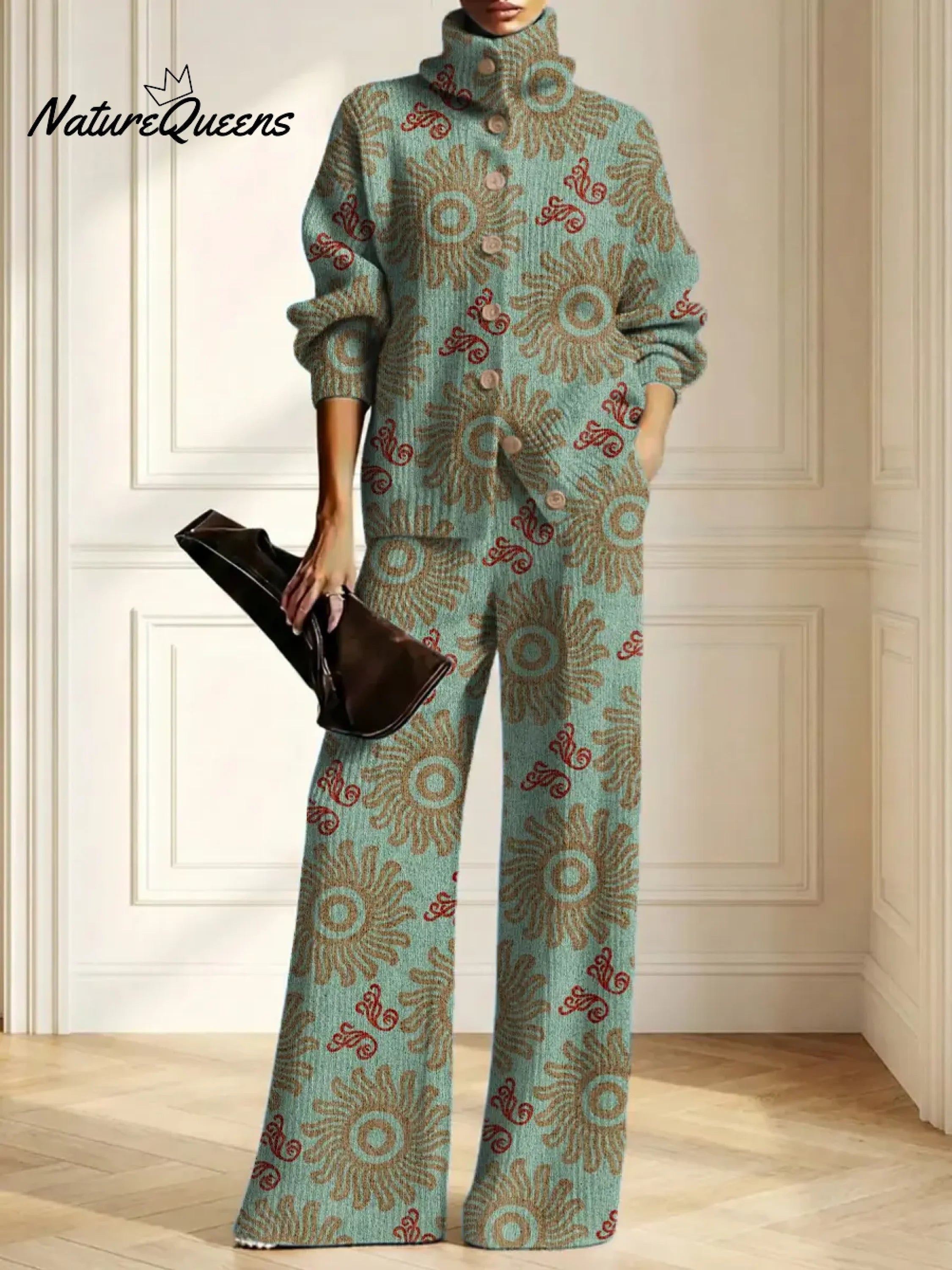 Women's Abstract Pattern Art Print Casual Cotton Knitted Suits