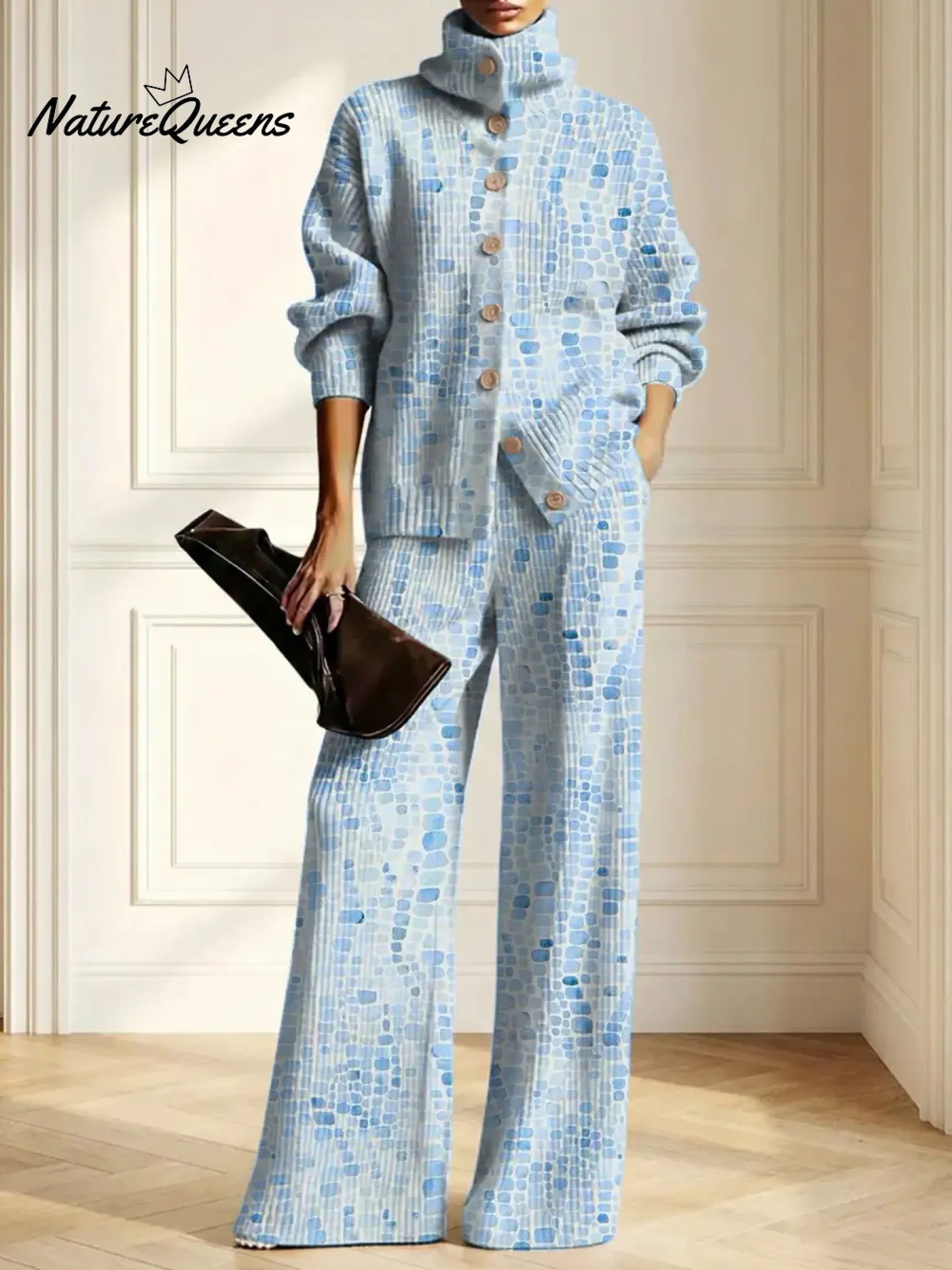 Women's Abstract Pattern Art Print Casual Cotton Knitted Suits