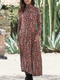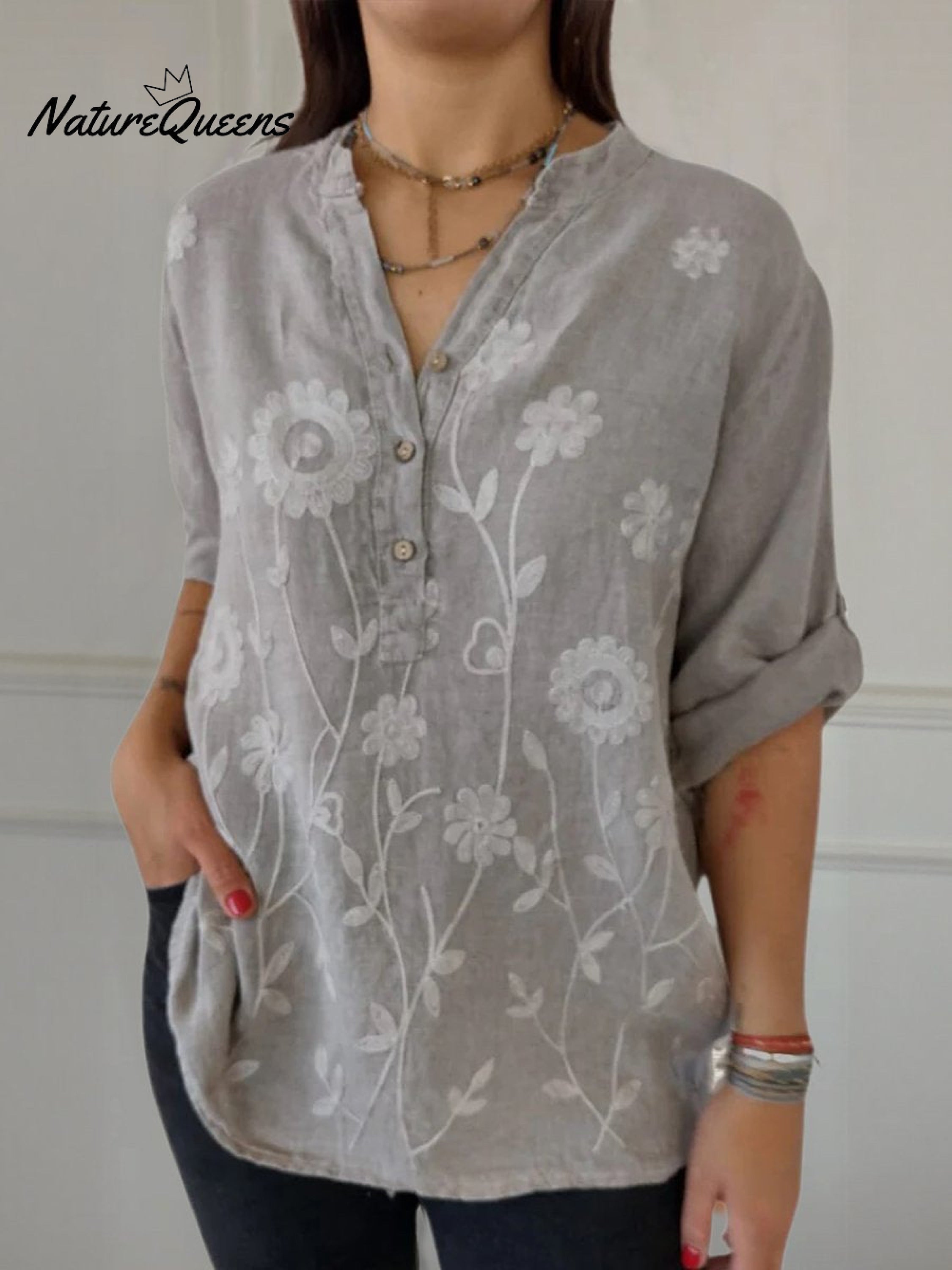 Women's Art Print Casual Cotton And Linen Henry Collar Shirt