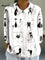 Women's Artistic Abstract Fun Black Cat Print Casual Cotton And Linen 3/4 Sleeve Shirt