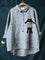 Women's Black Cat Stripe Art Print Casual Cotton And Linen Shirt