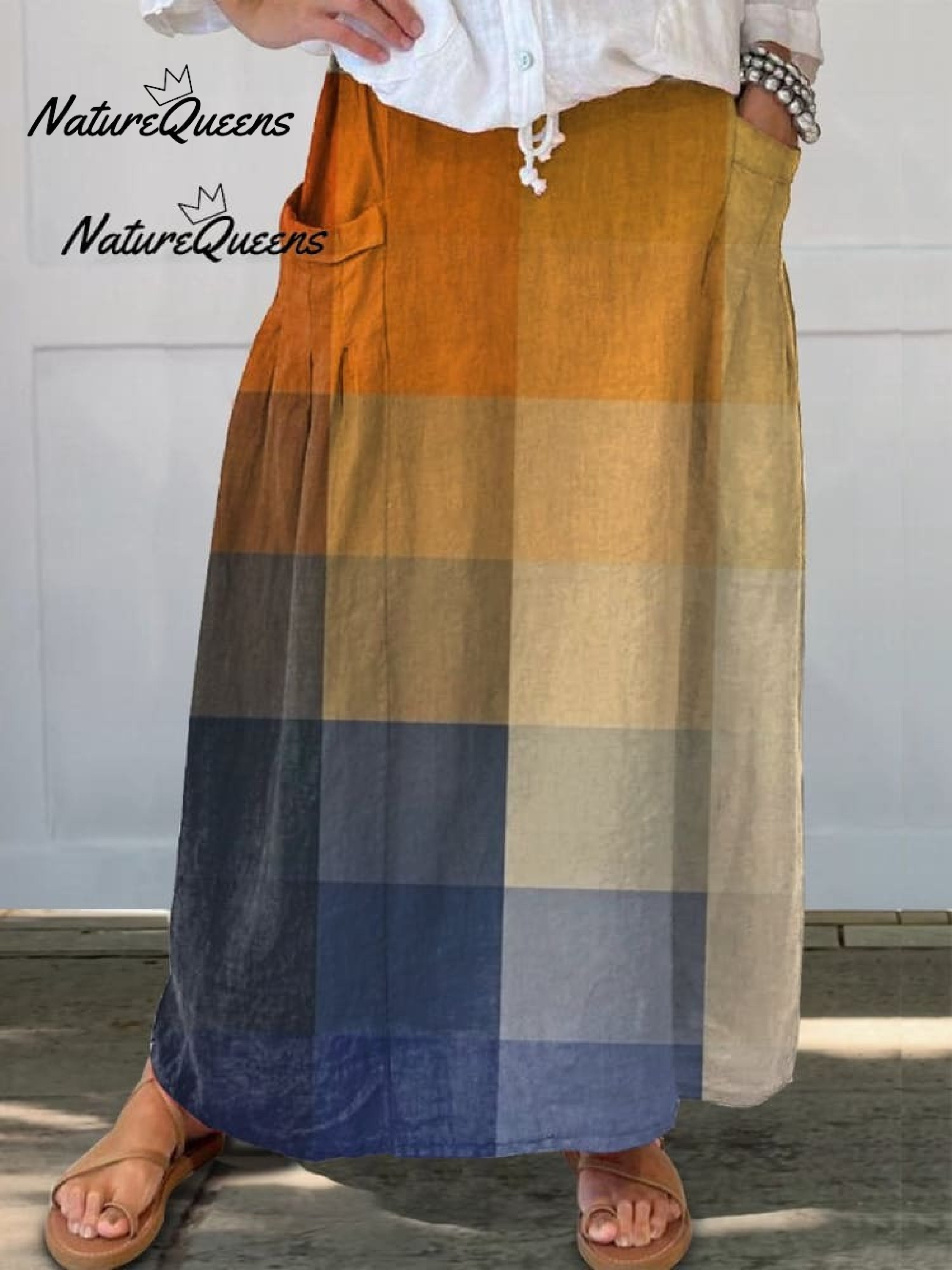 Women's Blue Yellow Gradient Mosaic Abstract Art Casual Cotton Linen Shirt