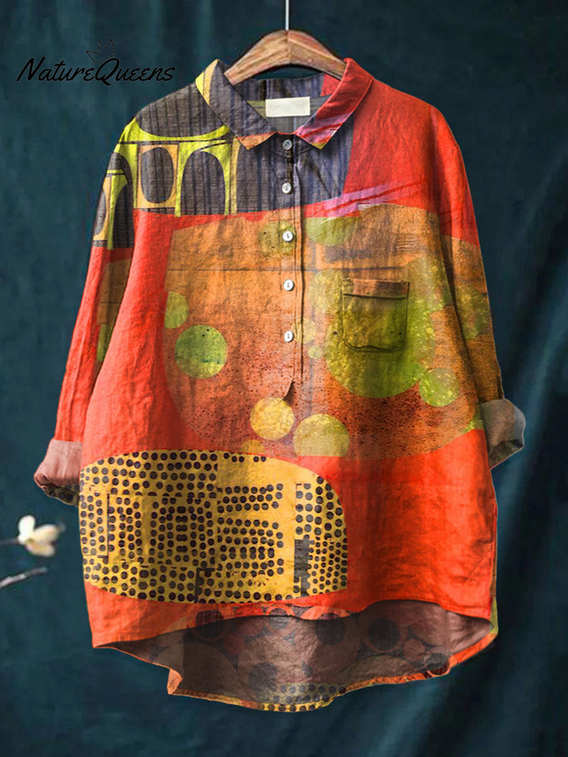 Women'sBOHO Art Print Casual Cotton And Linen Shirt