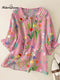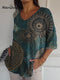 Women's Boho Vintage Art Print Casual Linen V-neck Shirt