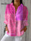 Women's Bright Polka Dot Art Print Casual Linen V-neck Shirt