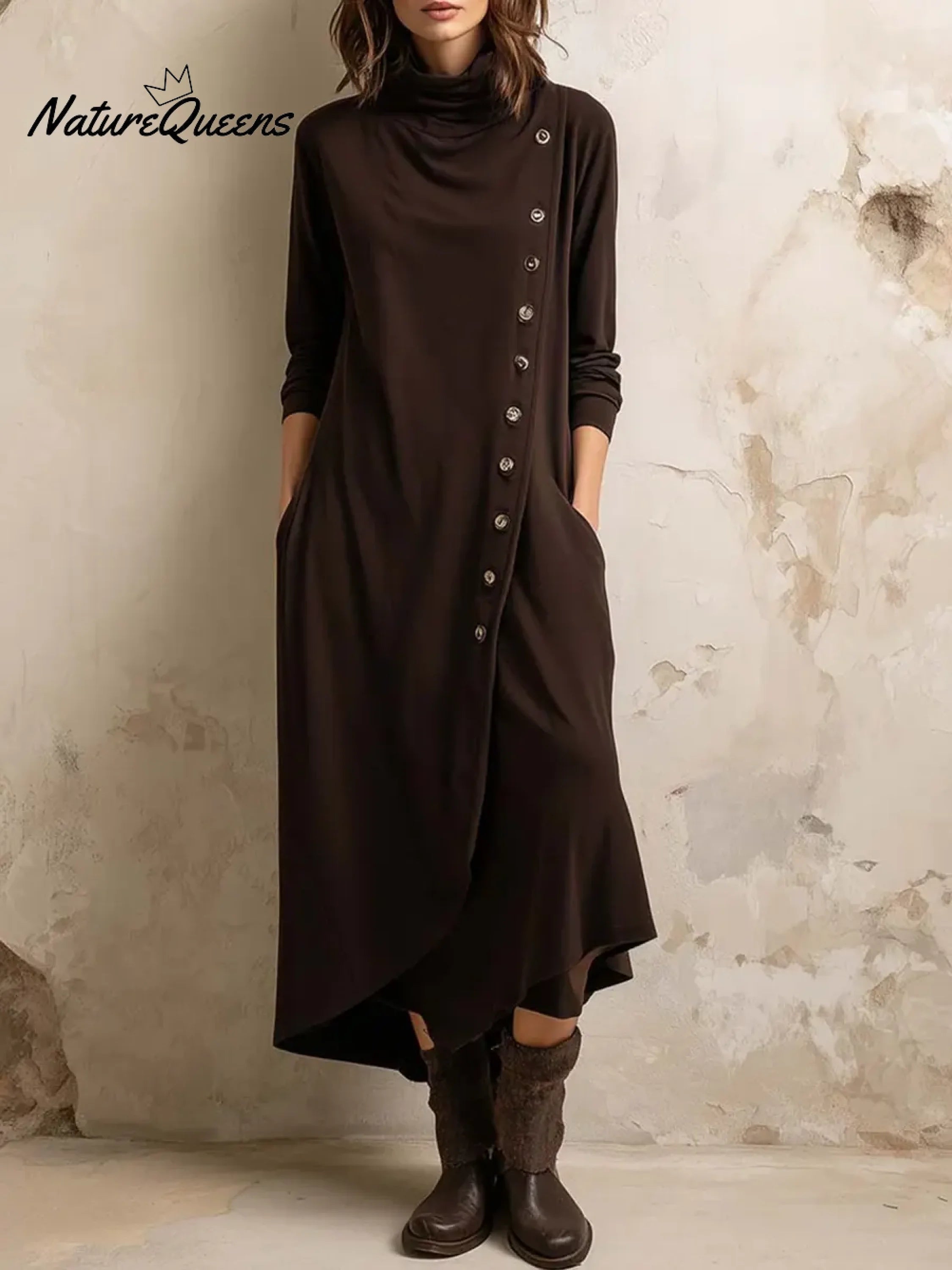 Women's Casual Asymmetrical Hem Button Cotton Dress