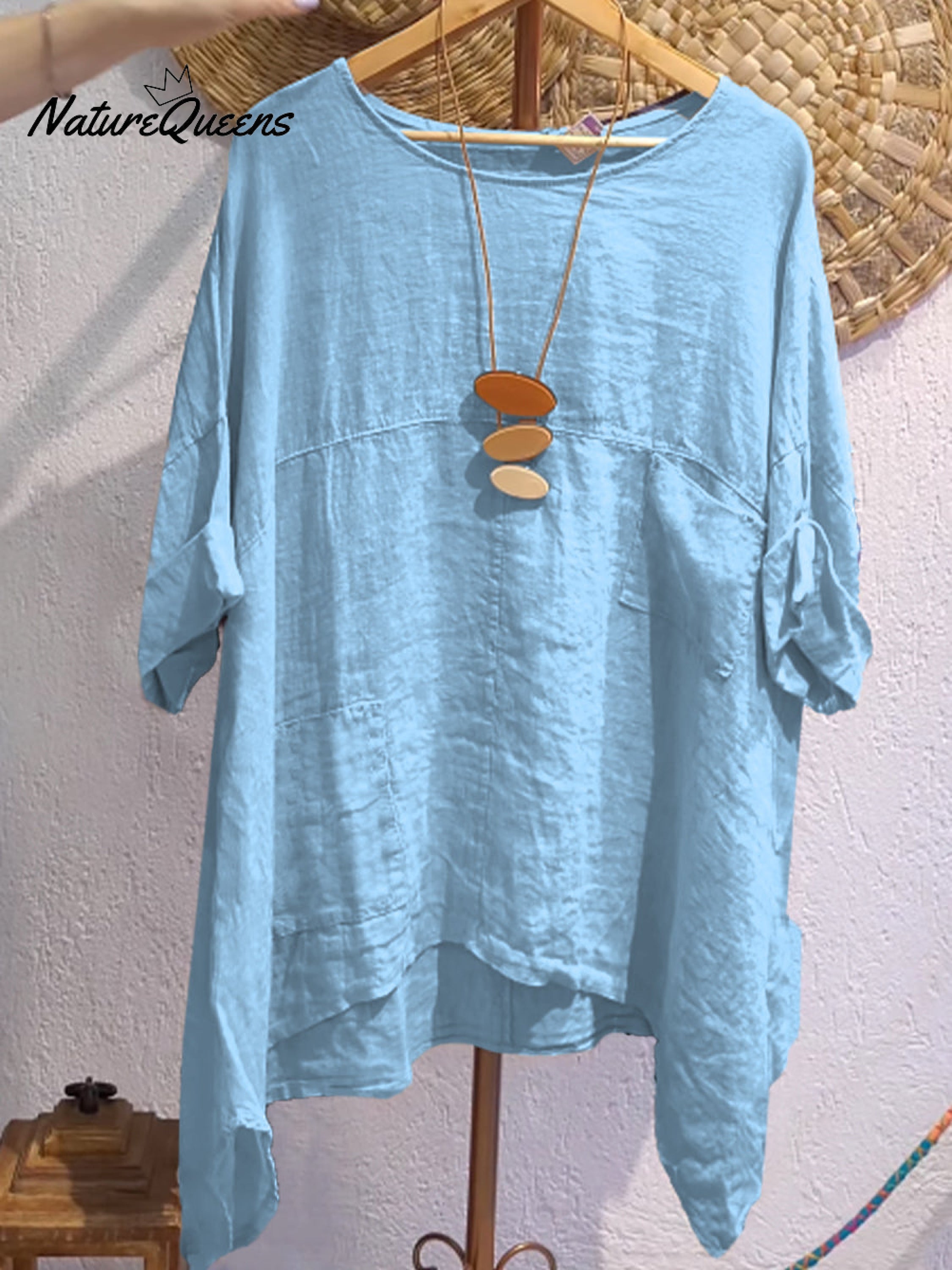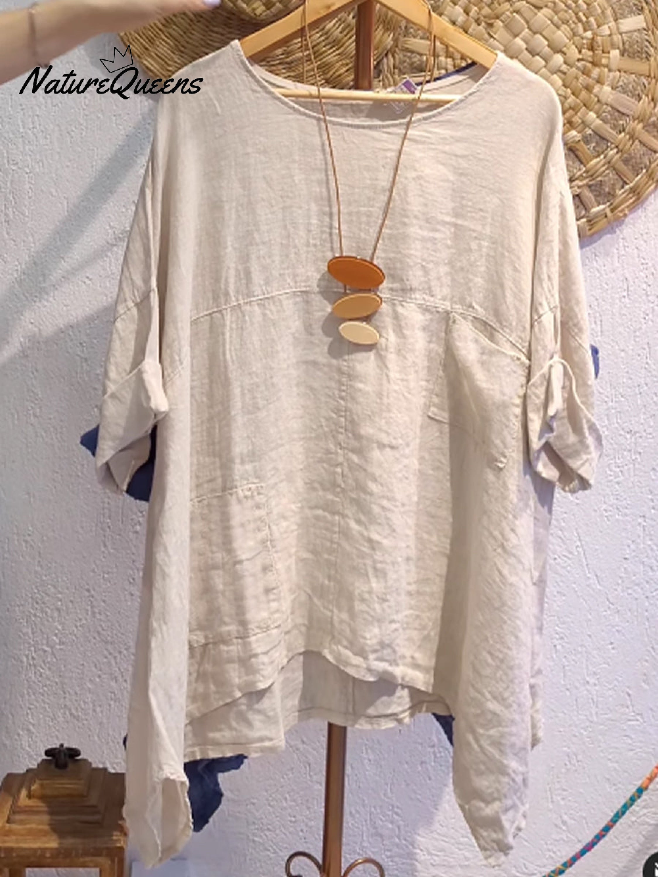 Women's Casual Cotton and Linen Round-neck Shirt