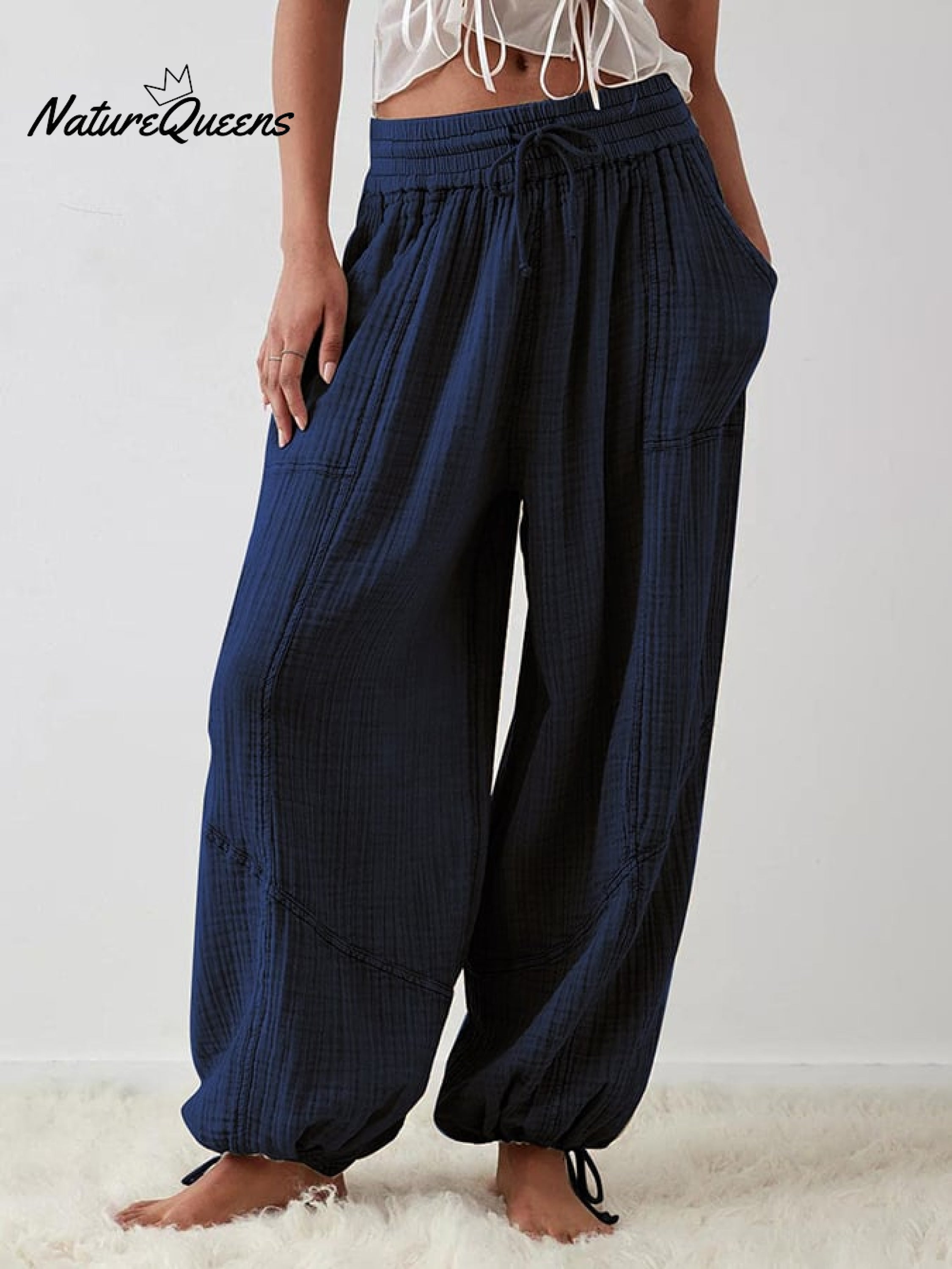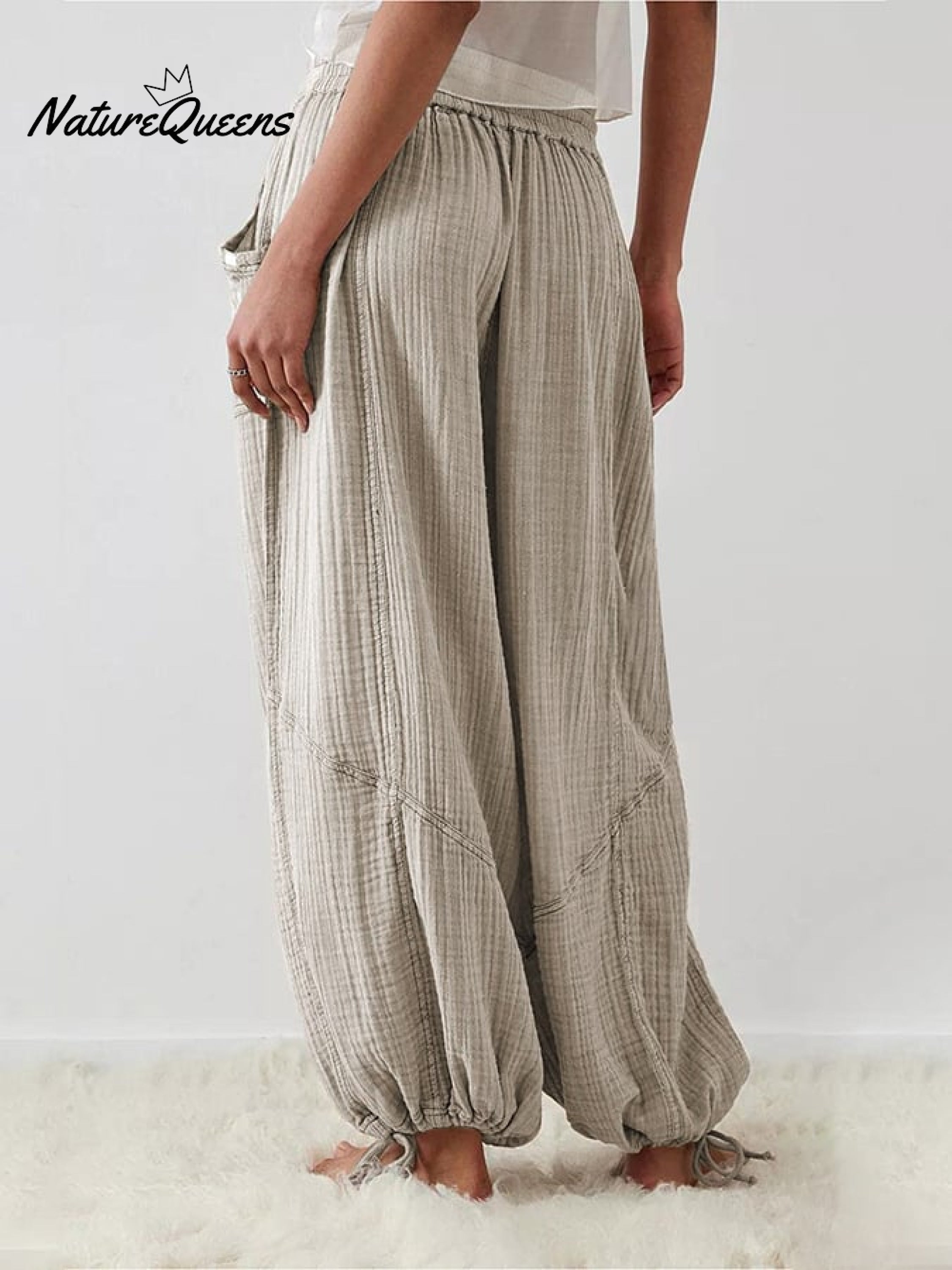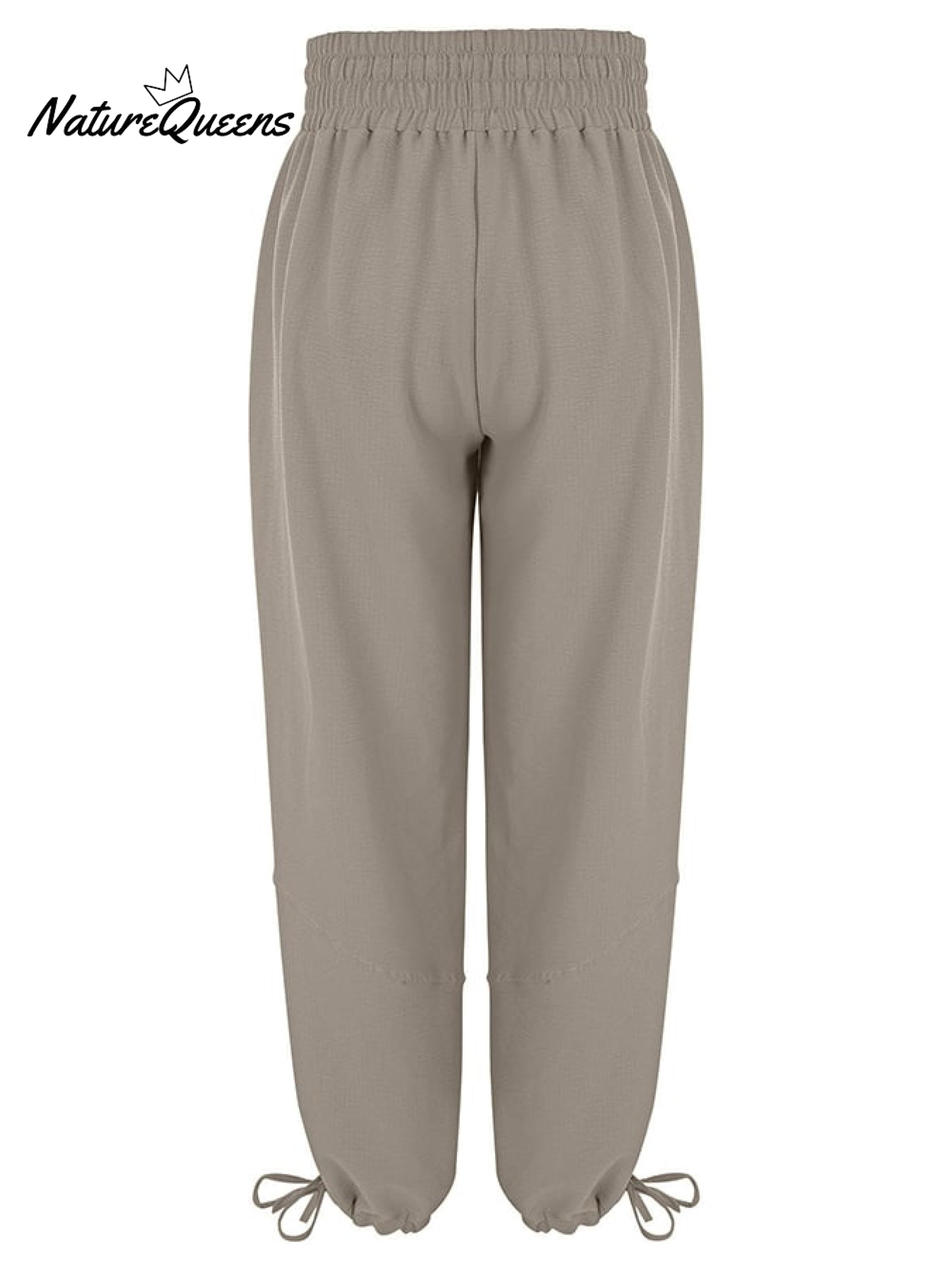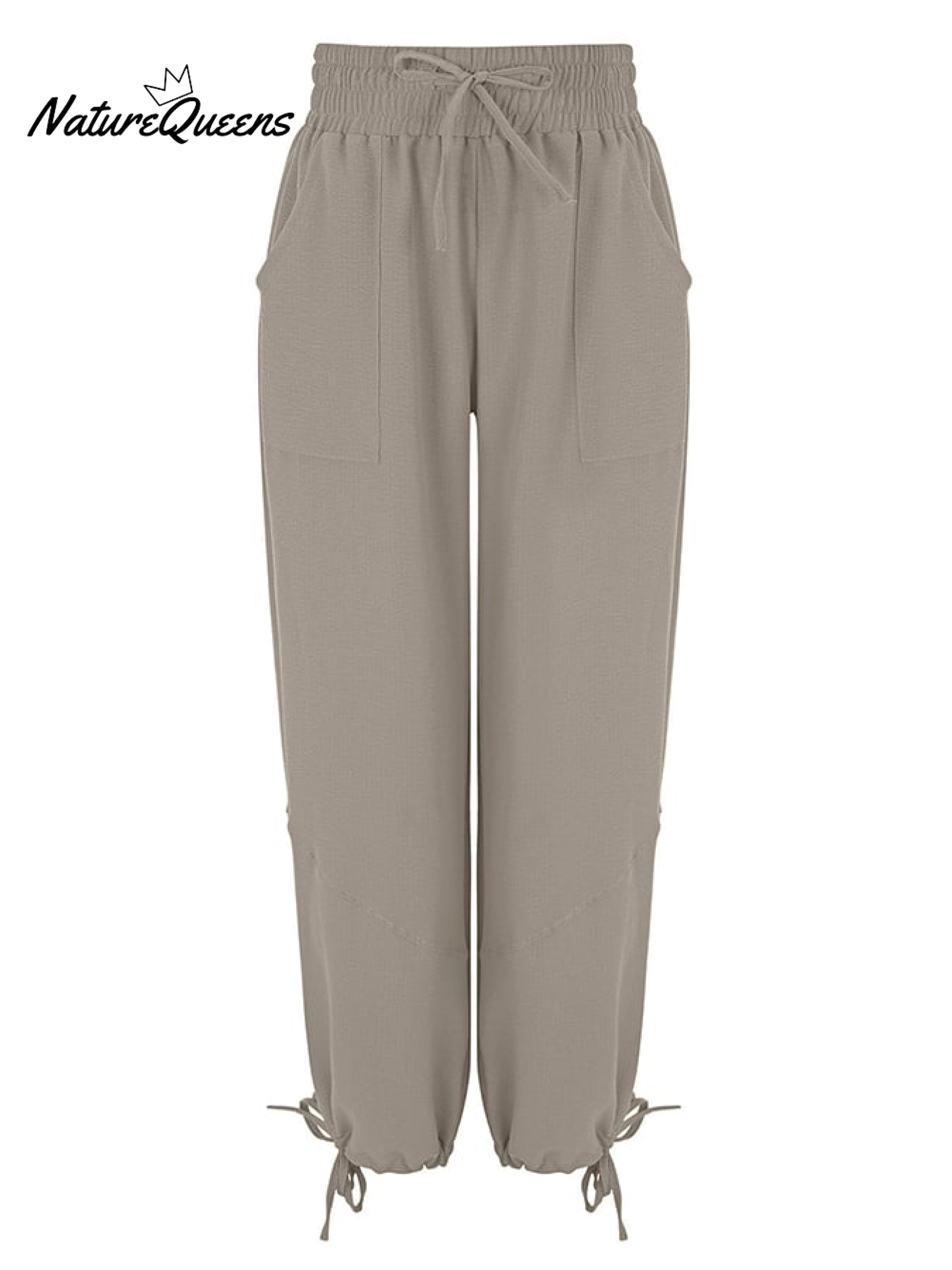 Women's Casual Fashion Solid Color Strap Pocket Wide Leg Pants