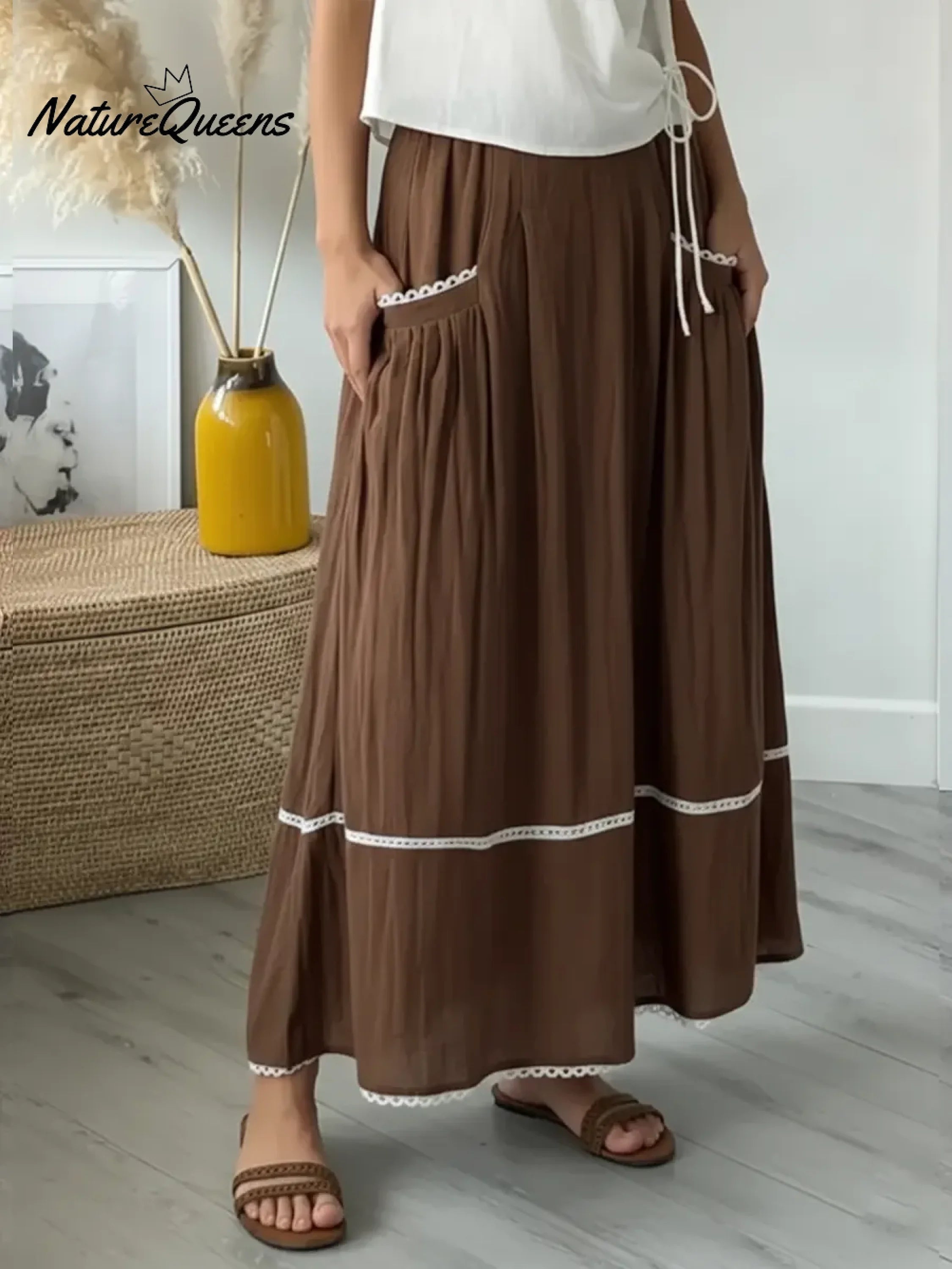 Women's Casual Patchwork White Lace Linen-cotton Skirt