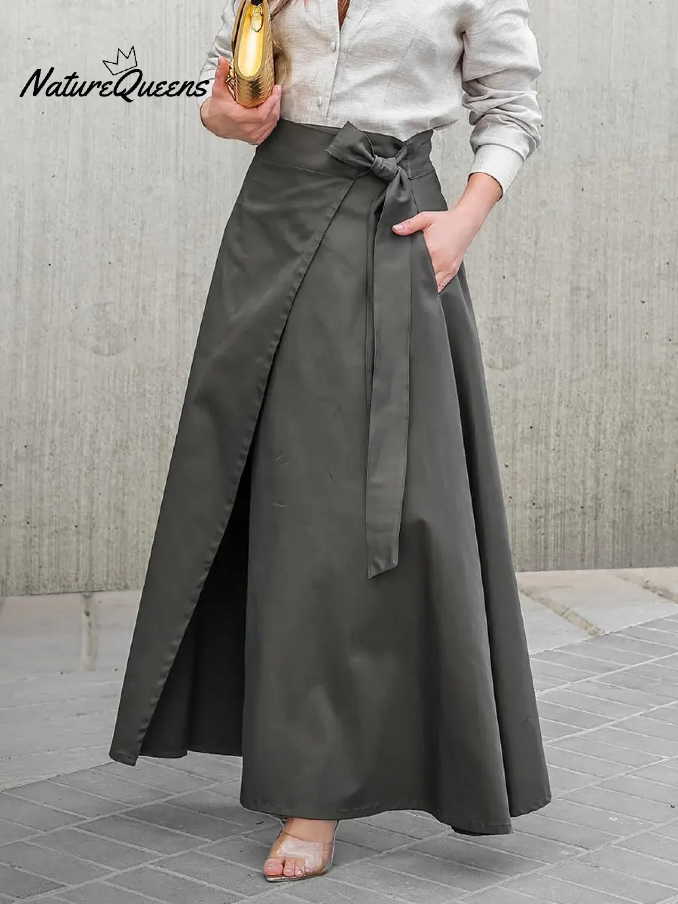 Women's Casual Tie-Waist Cotton Midi Skirt