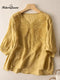 Women's Casual V-neck Waffle Knit Long-sleeved Top