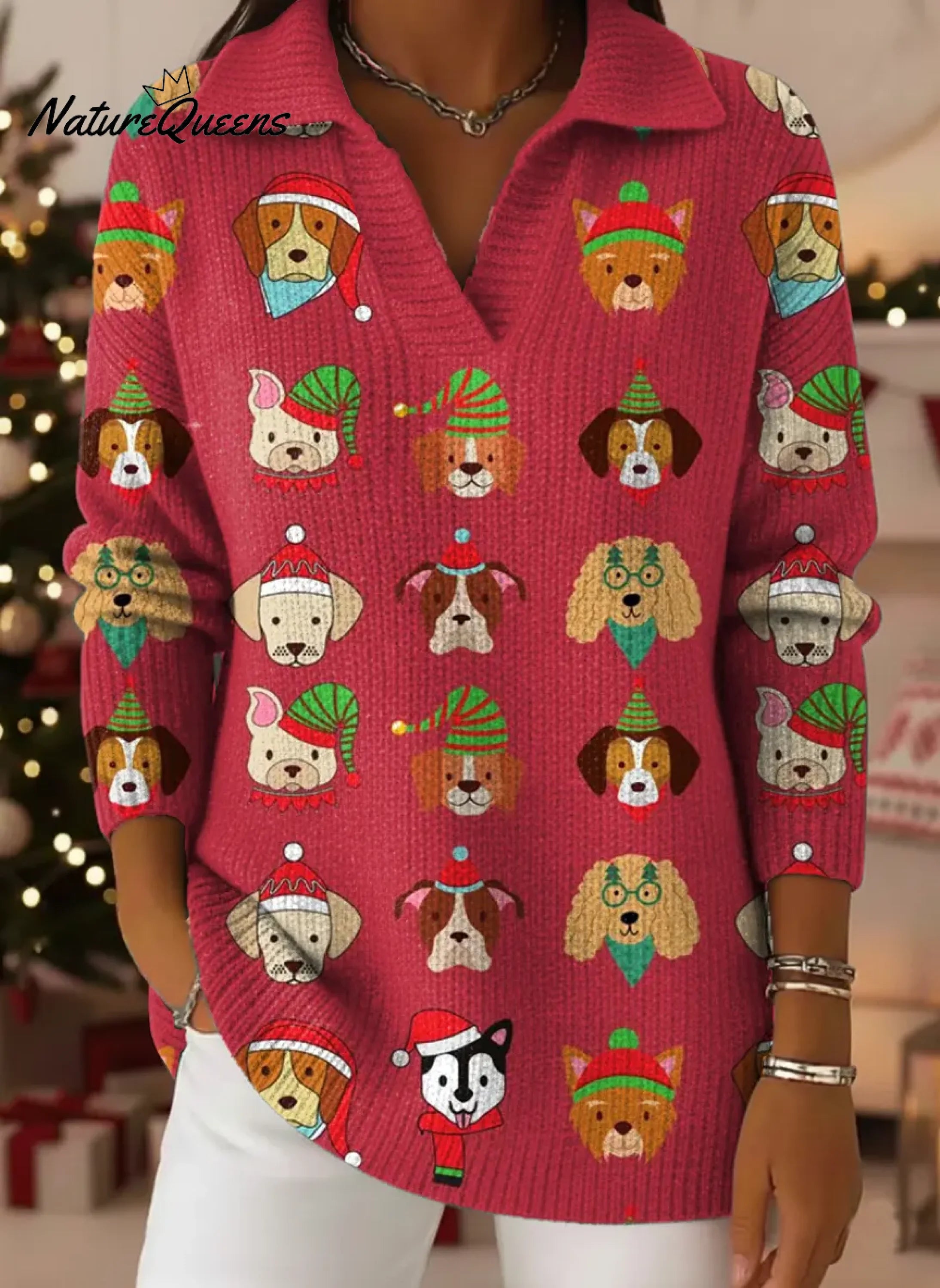 Women's Christmas Dogs Pattern Art Print Casual Cotton Sweater