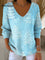 Women's Christmas Pattern Art V-neck Solid Color Loose Shiny Sweater