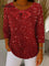Women's Christmas Print Crew Neck 3/4 Sleeve Casual Loose Sweater