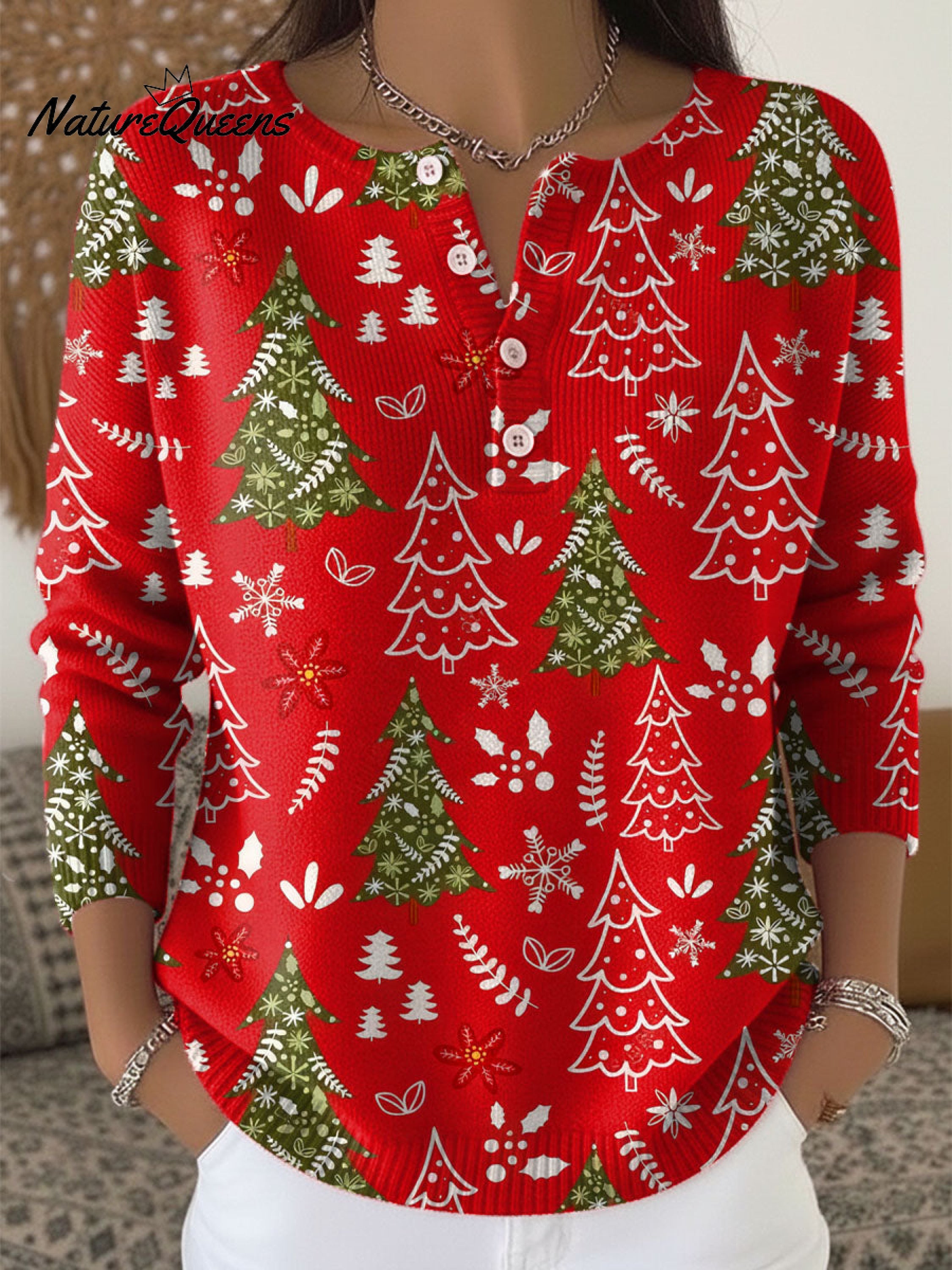 Women's Christmas Tree Pattern Art Print Buttoned Cardigan Sweater