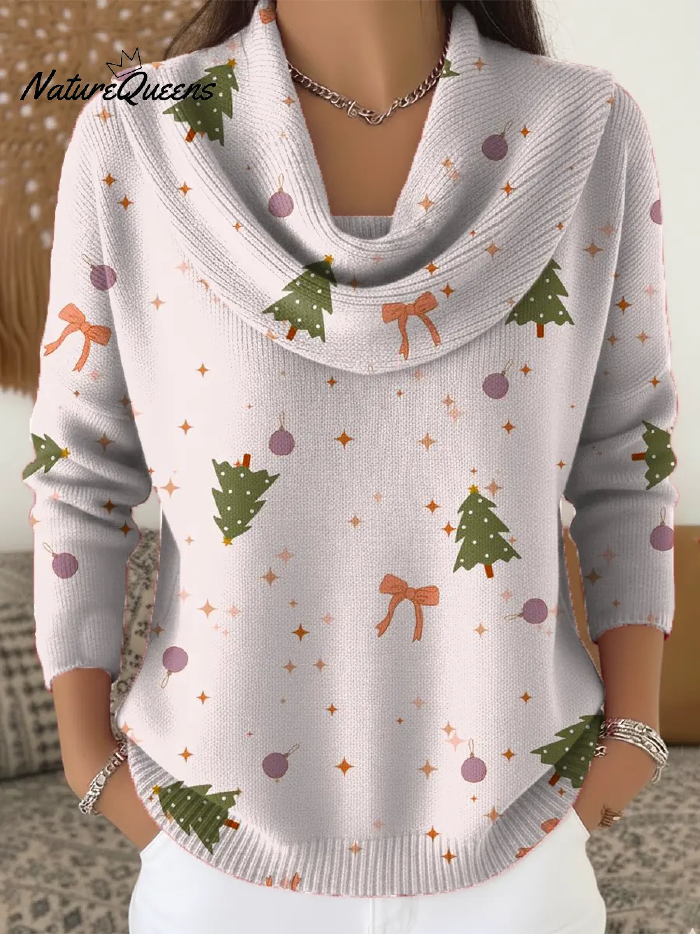 Women's Christmas Tree Pattern Art Print Casual Cowl Neck Sweater
