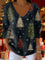 Women's Christmas Trees Gradient Pattern Art Print V-neck Solid Color Loose Shiny Sweater