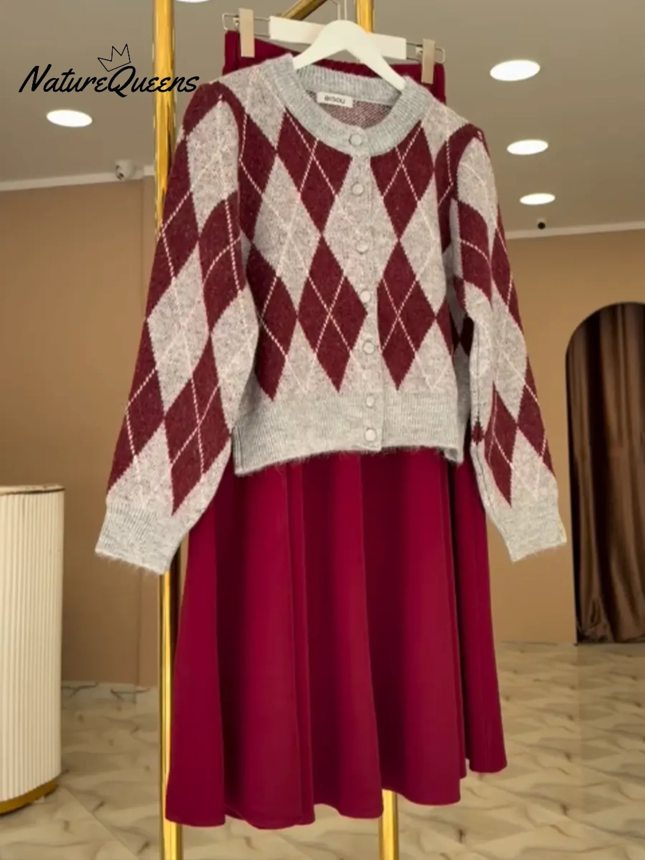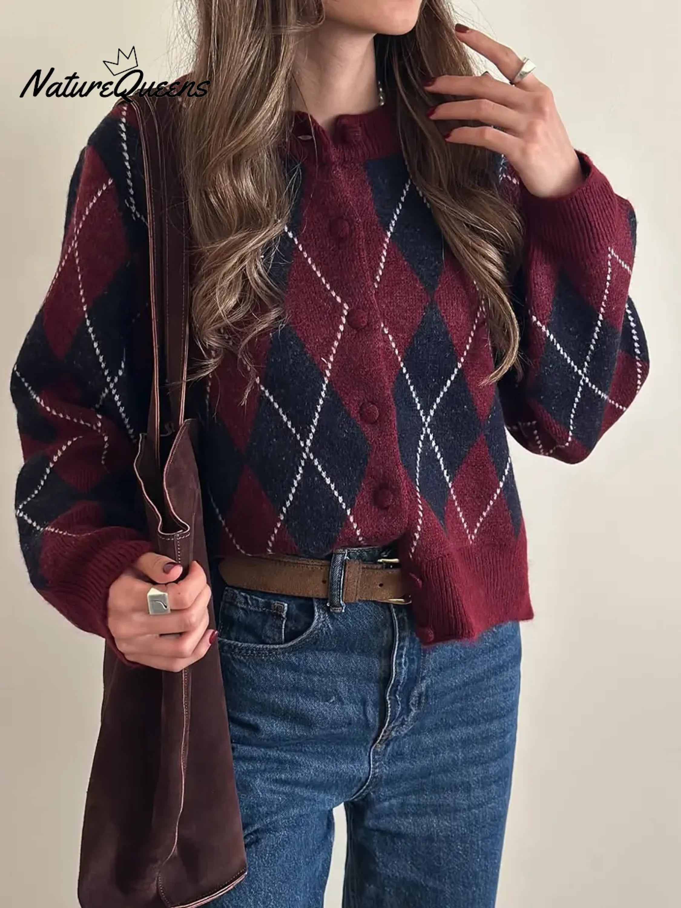 Women's Classic Diamond Pattern Cardigan