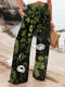 Women's Color-blocked Cardigan Collar Long-sleeved Casual Loose Top And High-waisted Casual Loose Color-blocked Wide-leg Pants S