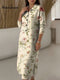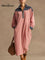 Women's Color-blocked Stand Collar Long Sleeve Casual Loose Cotton Dress