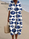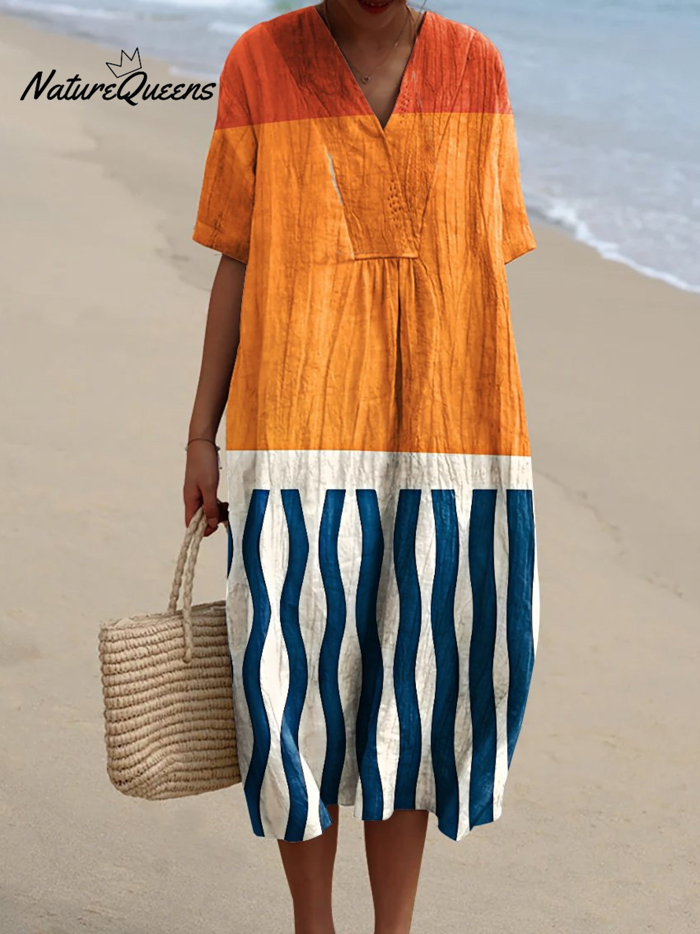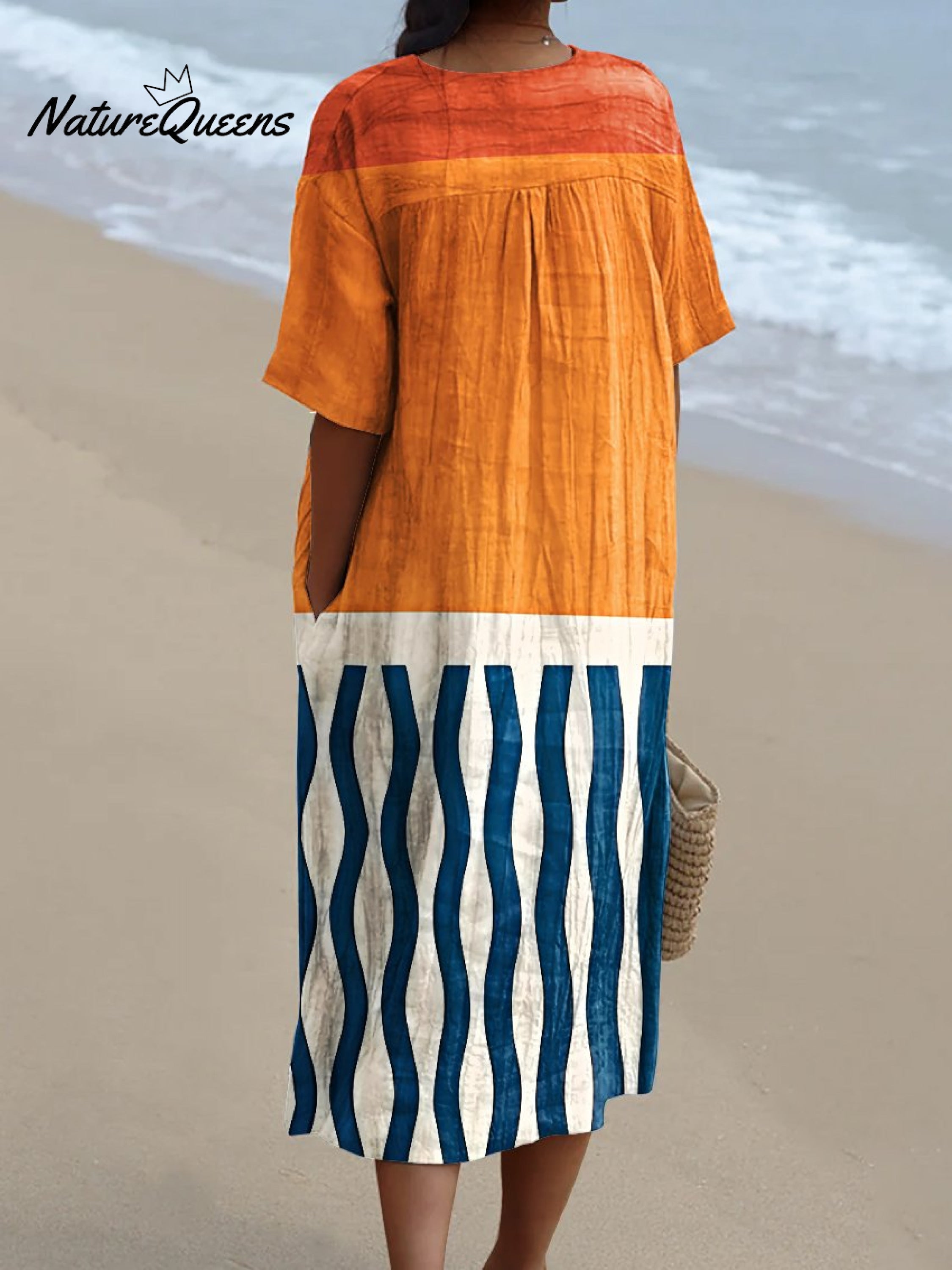 Women's Color-blocking Watercolor Splash Fluid Art Print Flowy Dress