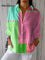 Women's Colorful Abstract Dot Art Print Casual Linen V-neck Shirt