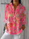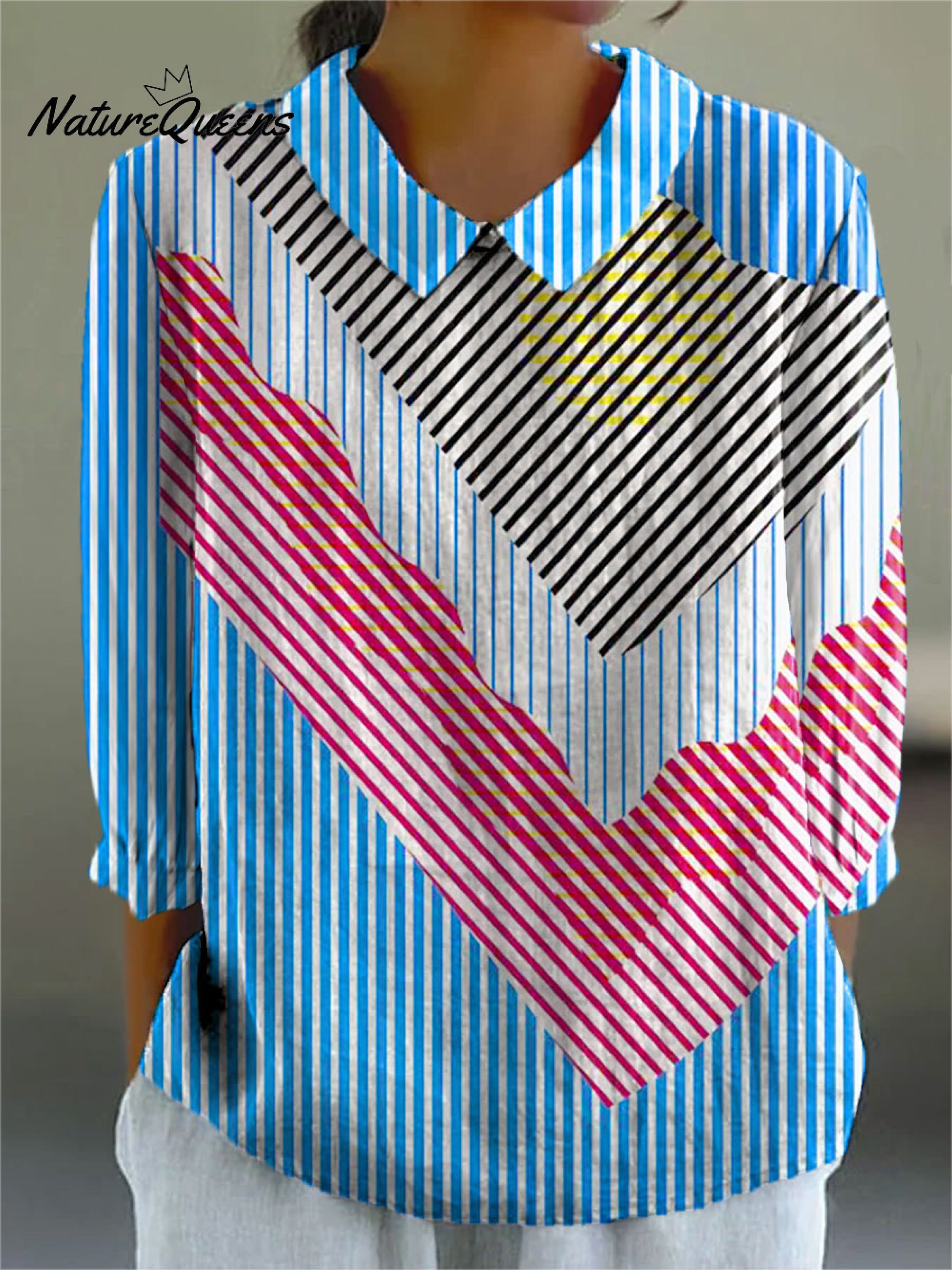Women's Colorful Stripes Abstract Cupcake Art Print Casual Cotton And Linen 3/4 Sleeve Shirt