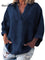 Women's Cotton and Linen V-neck Long-sleeved Pullover Top