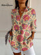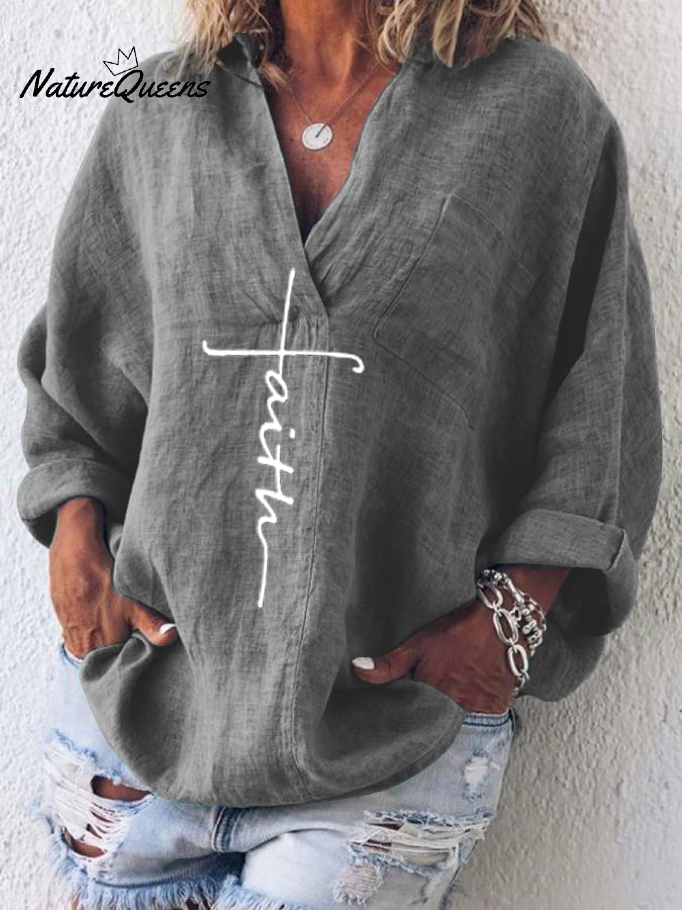 Women's Faith Printed Casual Long Sleeve V-Neck Cotton And Linen Shirt
