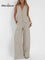 Women's Fashion Solid Color Vest Trousers Collage Stitching Cotton and Linen Casual Suit