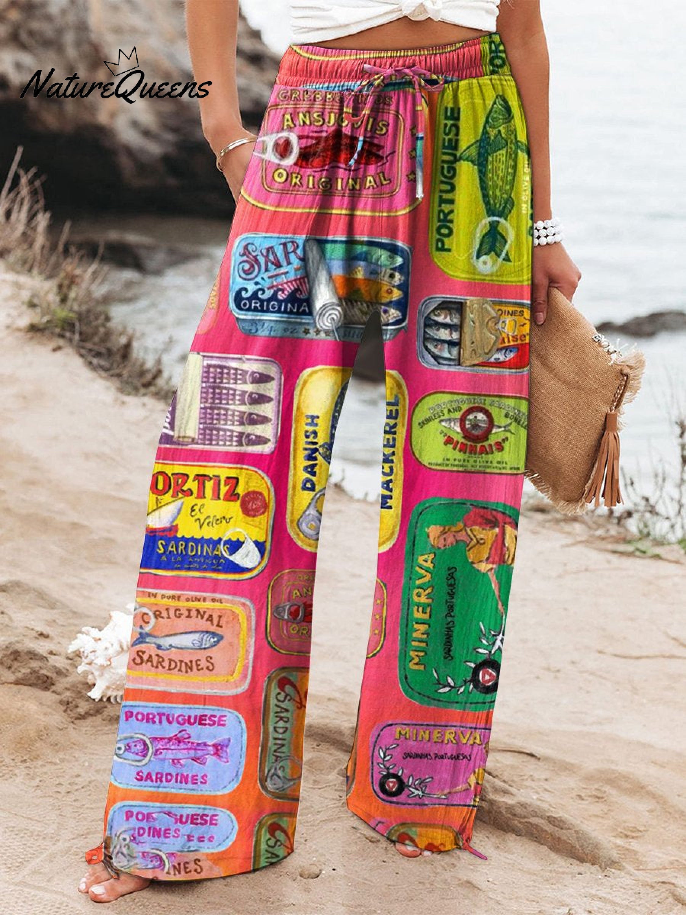 Women's Fish Art Printed Cotton And Linen Casual Pants