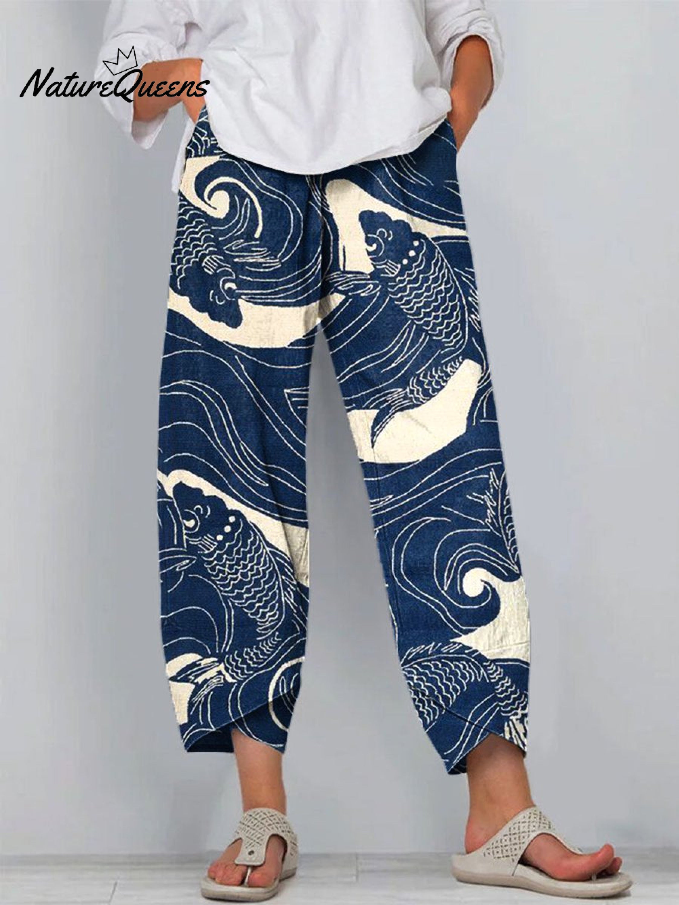 Women's Fish Art Printed Cotton And Linen Casual Pants