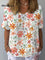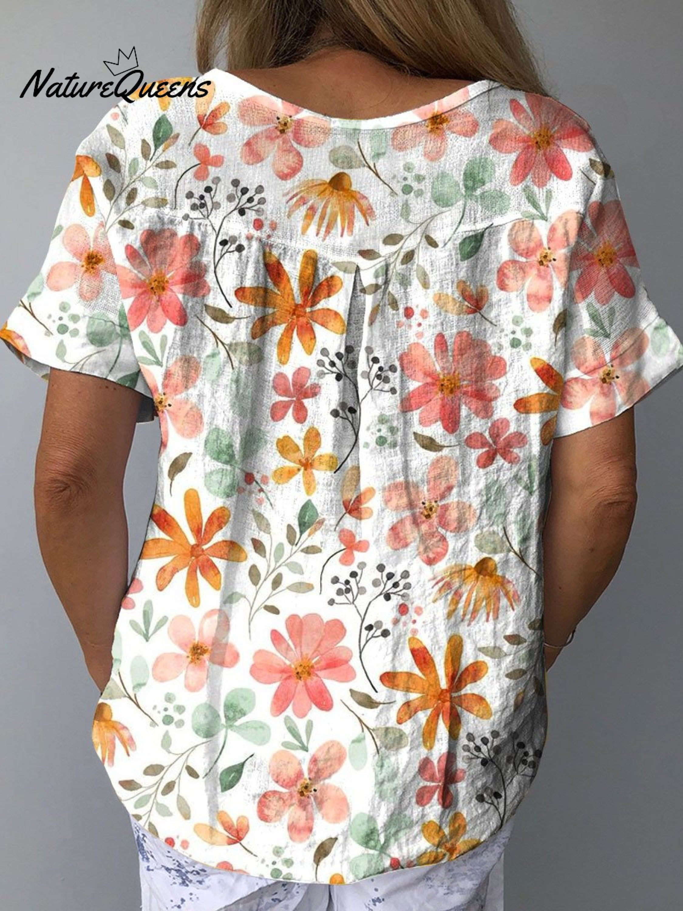Women's Floral Art Print Casual Cotton And Linen Shirt