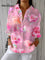 Women's Floral Art Print Casual Linen V-neck Shirt