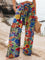 Women's Floral Art Printed Cotton And Linen Casual Pants