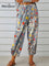 Women's Floral Art Printed Cotton And Linen Casual Pants