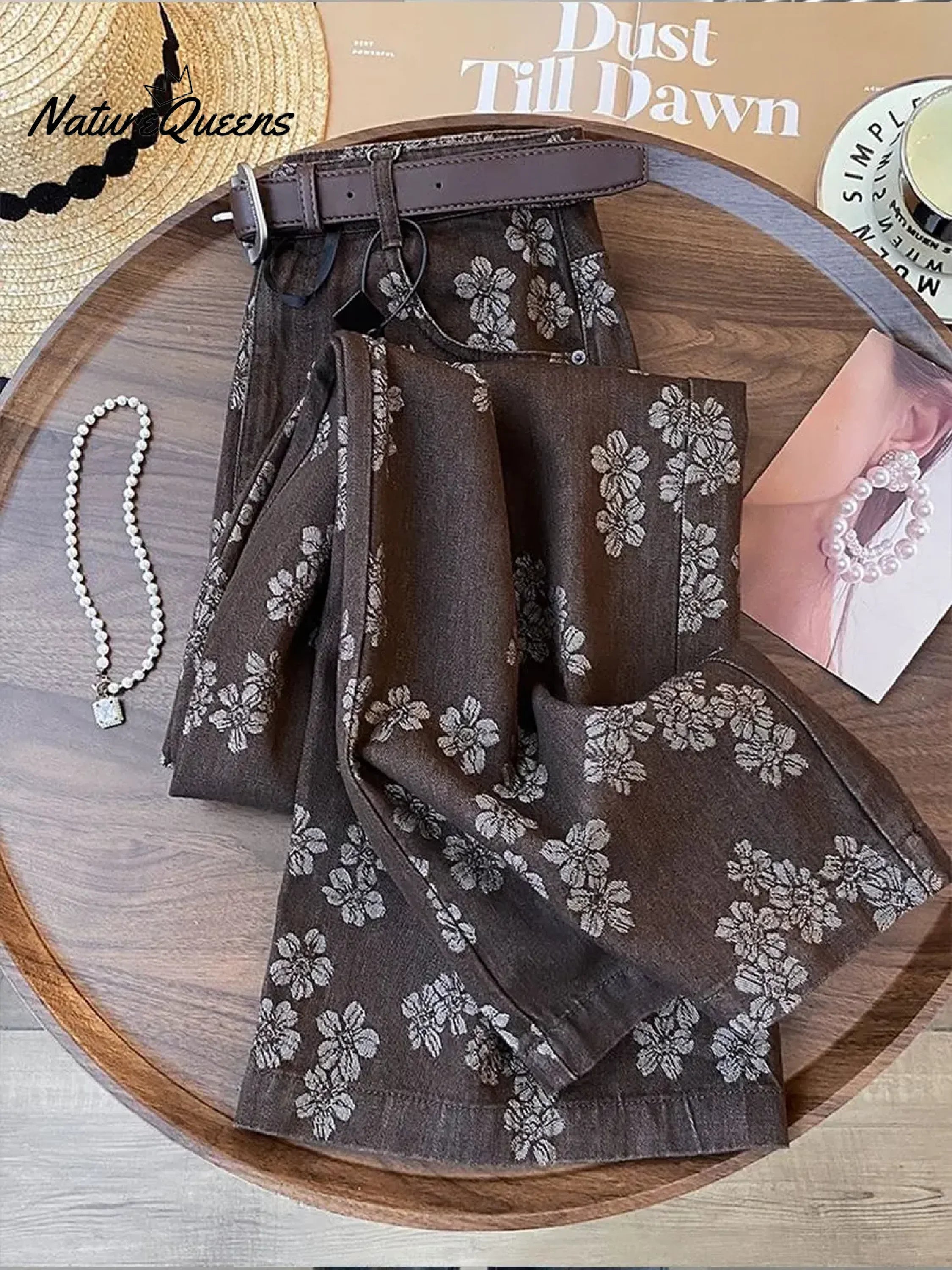 Women's Floral Jacquard Tencel And Cotton Pants