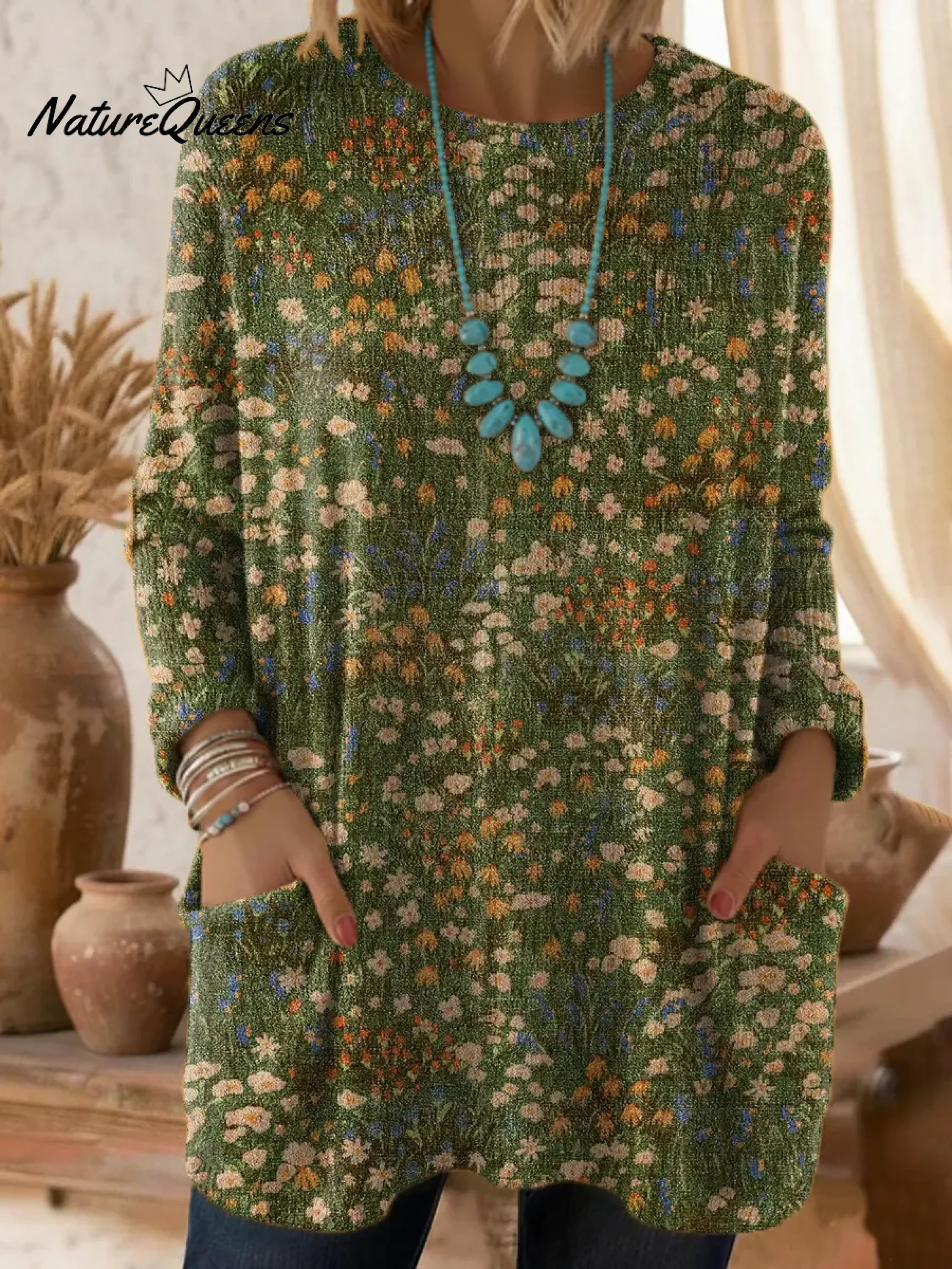 Women's Floral Pattern Art Print Casual Cotton Knitted Sweater