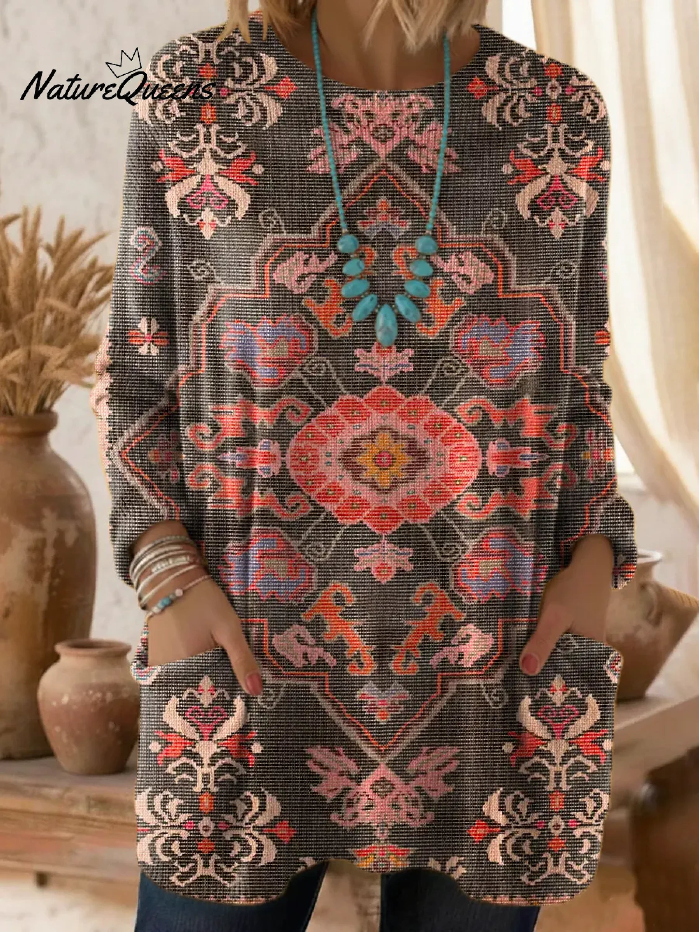 Women's Floral Pattern Art Print Casual Cotton Knitted Sweater