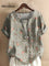 Women's Flower Art Print Casual Cotton And Linen Shirt